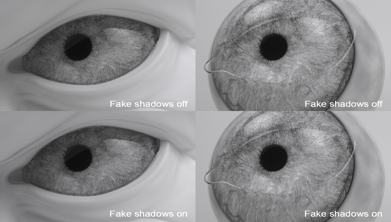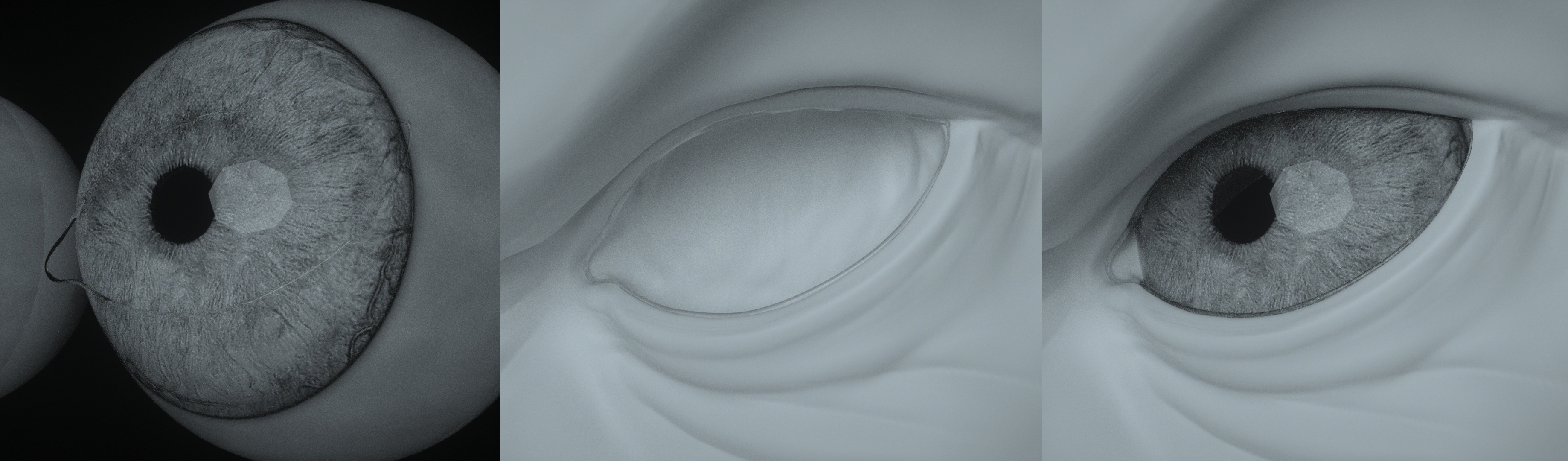 Just did a small test rendering the different meshes I created for the tear line with just the eye and nothing else.