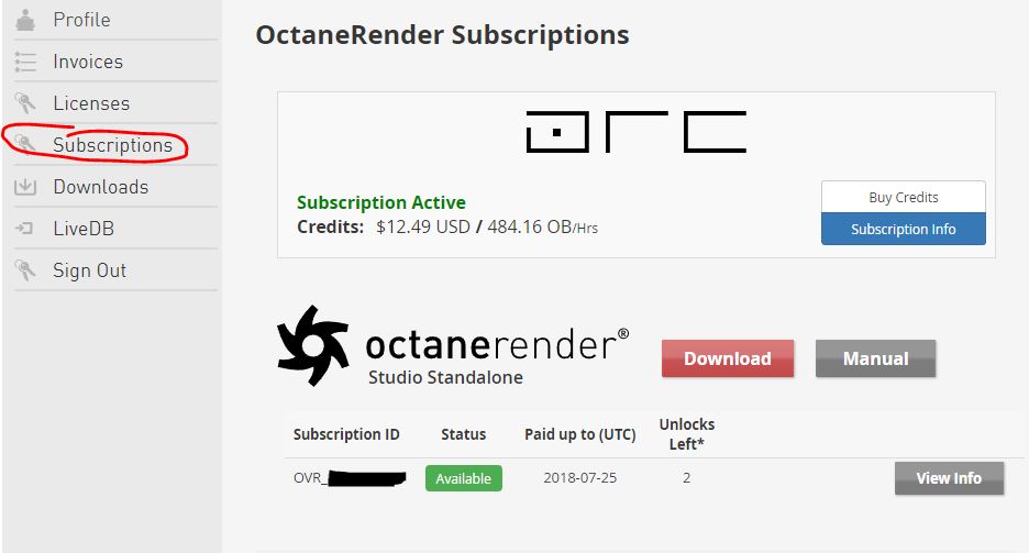 OctaneRender Subscription has the following limitations compared with a full (purchased) license: