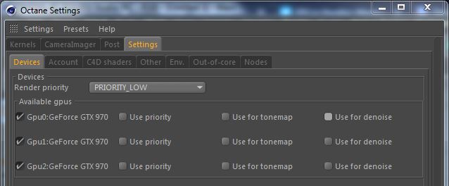 If you want to try with three GPUs, enable also the Priority on the first one, but you always need to choose one GPU for denoising.