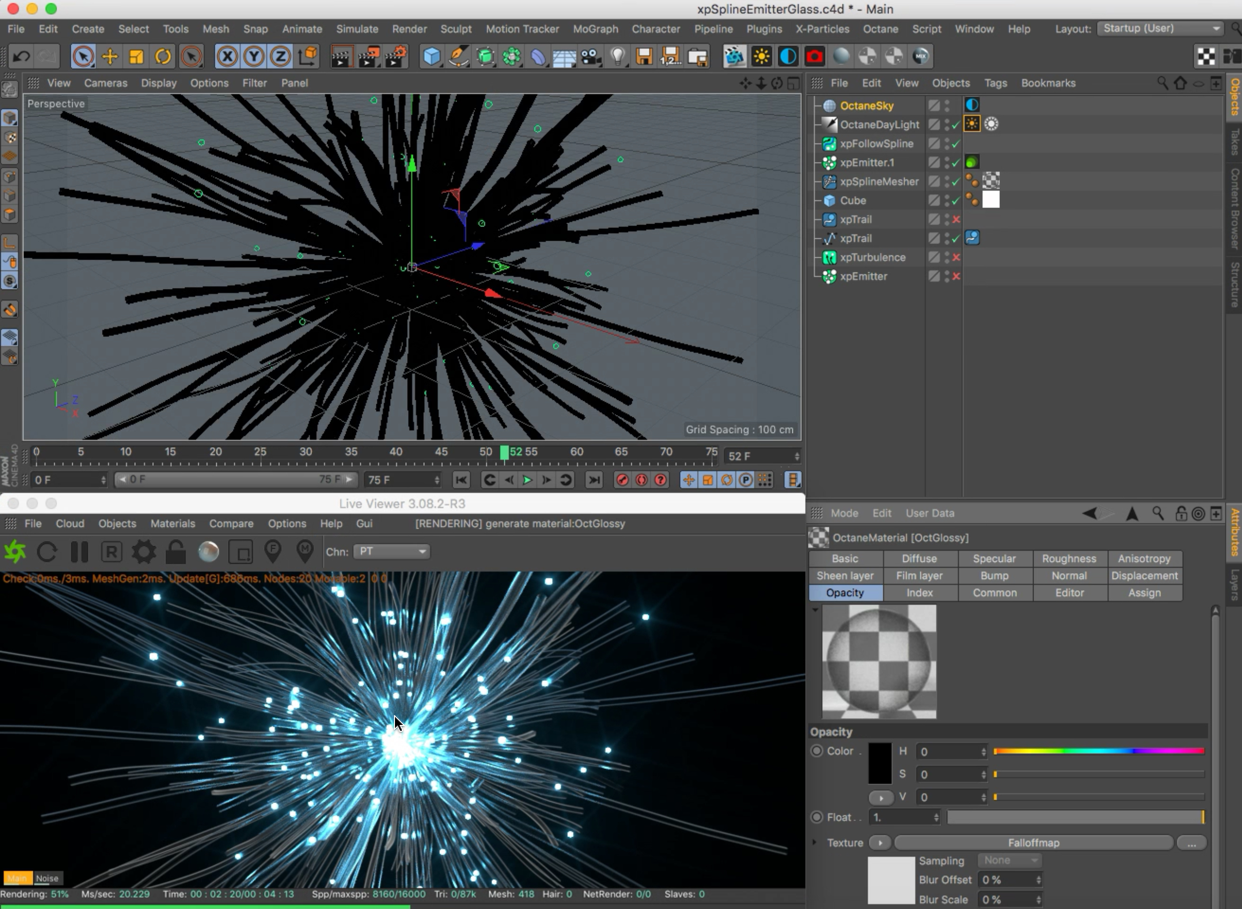 I tried out the vertex map tut, it was very informative. Do you know the trick to have the geometry have a glass material with the glowing light material combined?