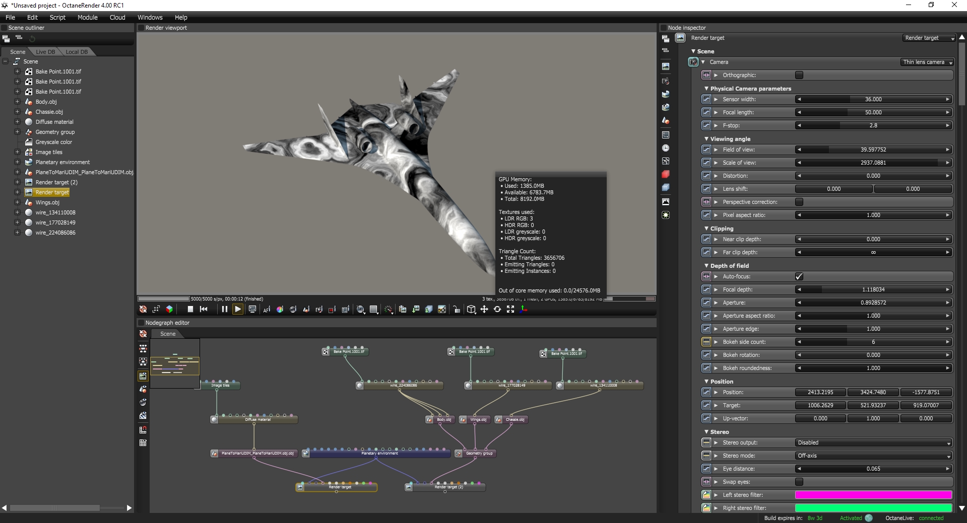 With this new "Render To Mesh" script node in the context menu under "Other" you can use Octane's internal ORBX scene translation system to flatten and export scene geometry connected to this node to FBX / Alembic files with one click. Note that this system does not yet export volumes or other primitives which are not supported directly in the FBX / Alembic formats. We are working on adding the FBX material export but that work isn't finished yet.