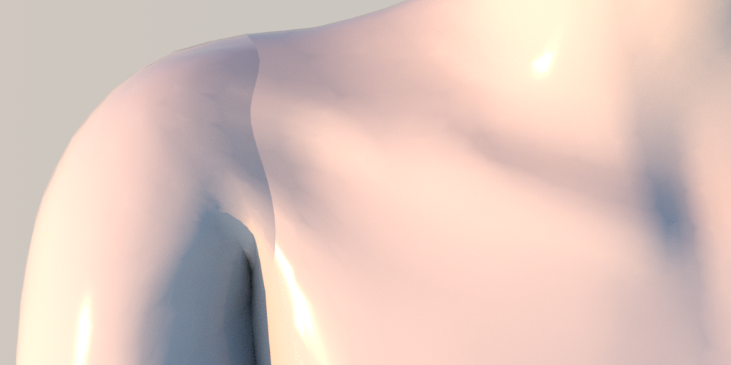 I had a look at the scene you sent to me and the problem is that the body mesh is split into separate mesh objects. Currently there is no way to "fuse" them back to one mesh in Octane. Since the subdivision is done on a per-mesh basis, the subdivided meshes will be discontinuous which becomes very obvious when looking at the sub-divided normals.