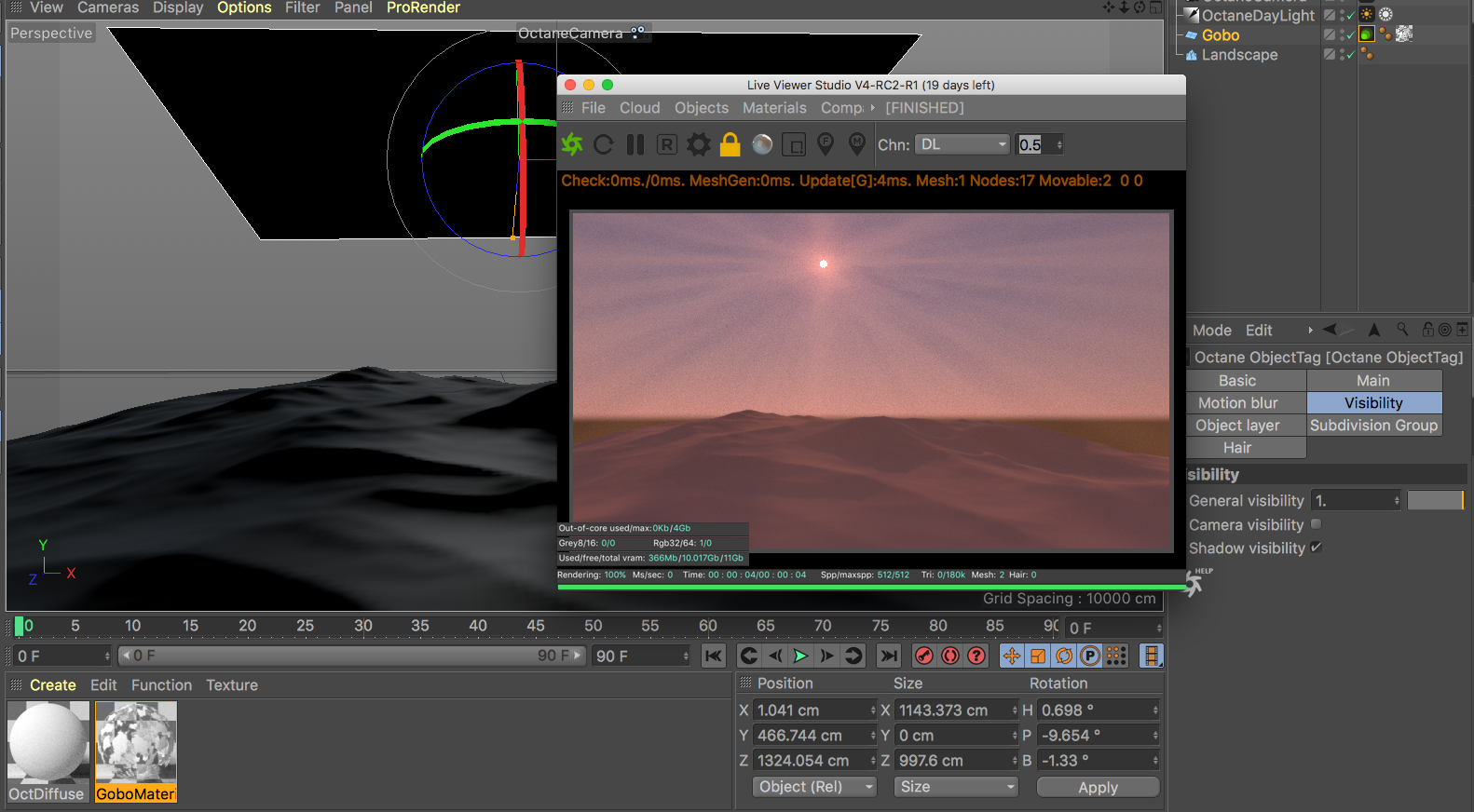 because I have a visible light in layout, I can add an obo object in front to simulate godrays...
