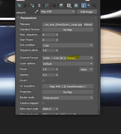 I have 16k normal map which eats a lot of memory, so I decided to compress it. I don't see any quality change in my render, but it frees 1GB of VRAMDartFrog wrote:I found "faster", but I'm not sure it's working. I can't go through all my maps and change this. I'm reverting back to prev version.