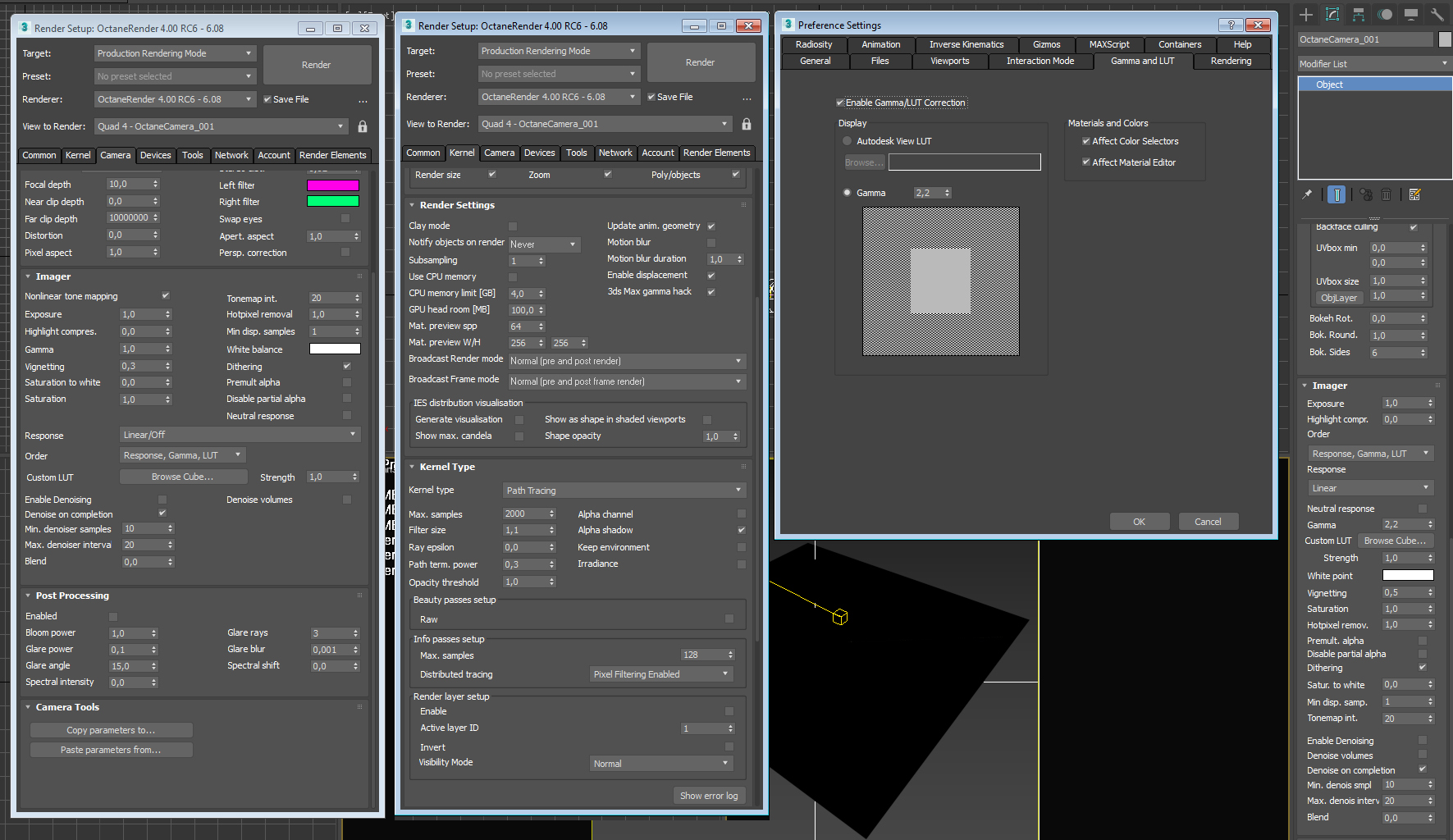 However, if I disable 3Ds Max Gamma Hack & set the Octane Camera Imager Gamma to 1.0 instead of 2.2, it works as expected.