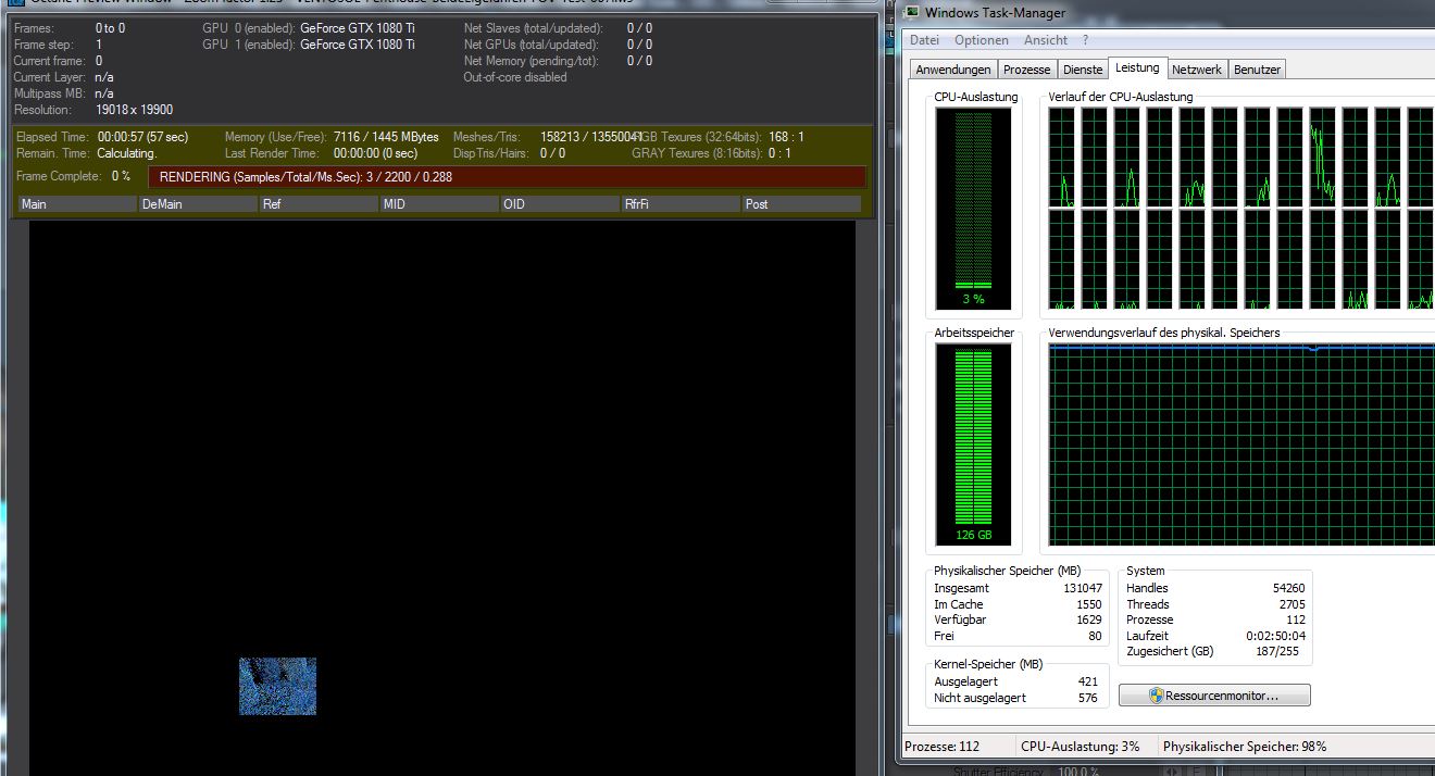 I´ve to render a 19.000 px image and RAM gets very high (125GB) while "updating Scene in GPU"