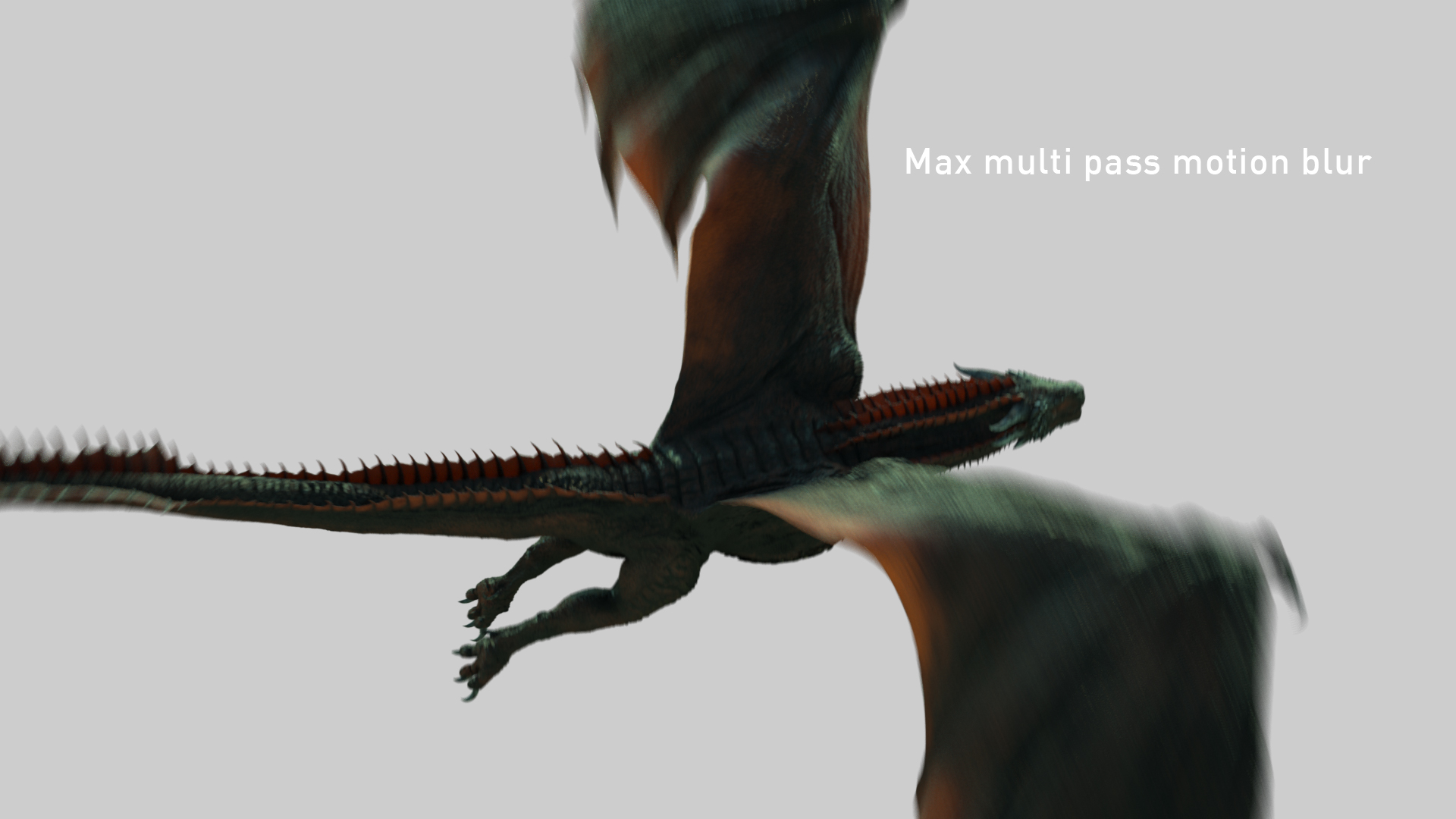 We have a complex scene a dragon flying over a mountain shot, We tried to turn on motion blur both vertex motion blur