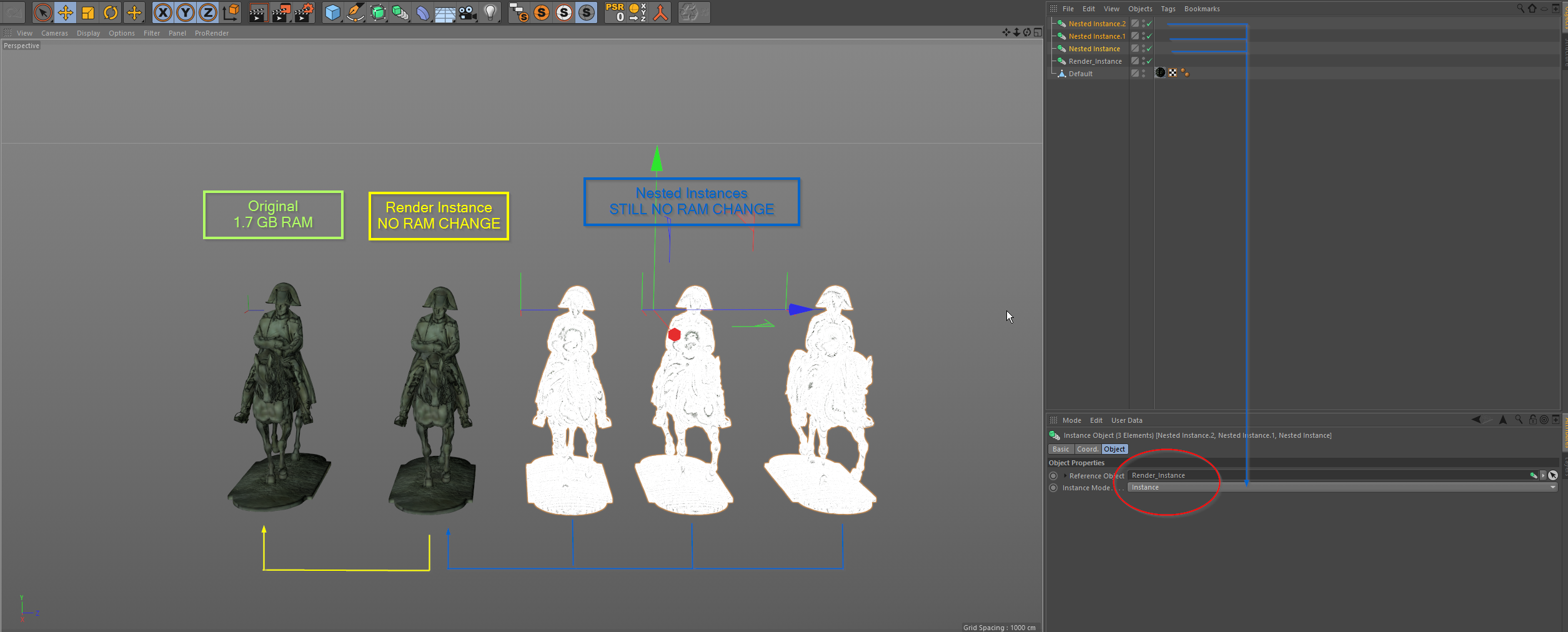 forward wrote:I would think that the most memory effective workflow (with the limitation in mind) would be to set the very first instance of an object as "Render Instance" and then use "Instance" for all instances refereing to the very first one set to "Render Instance".