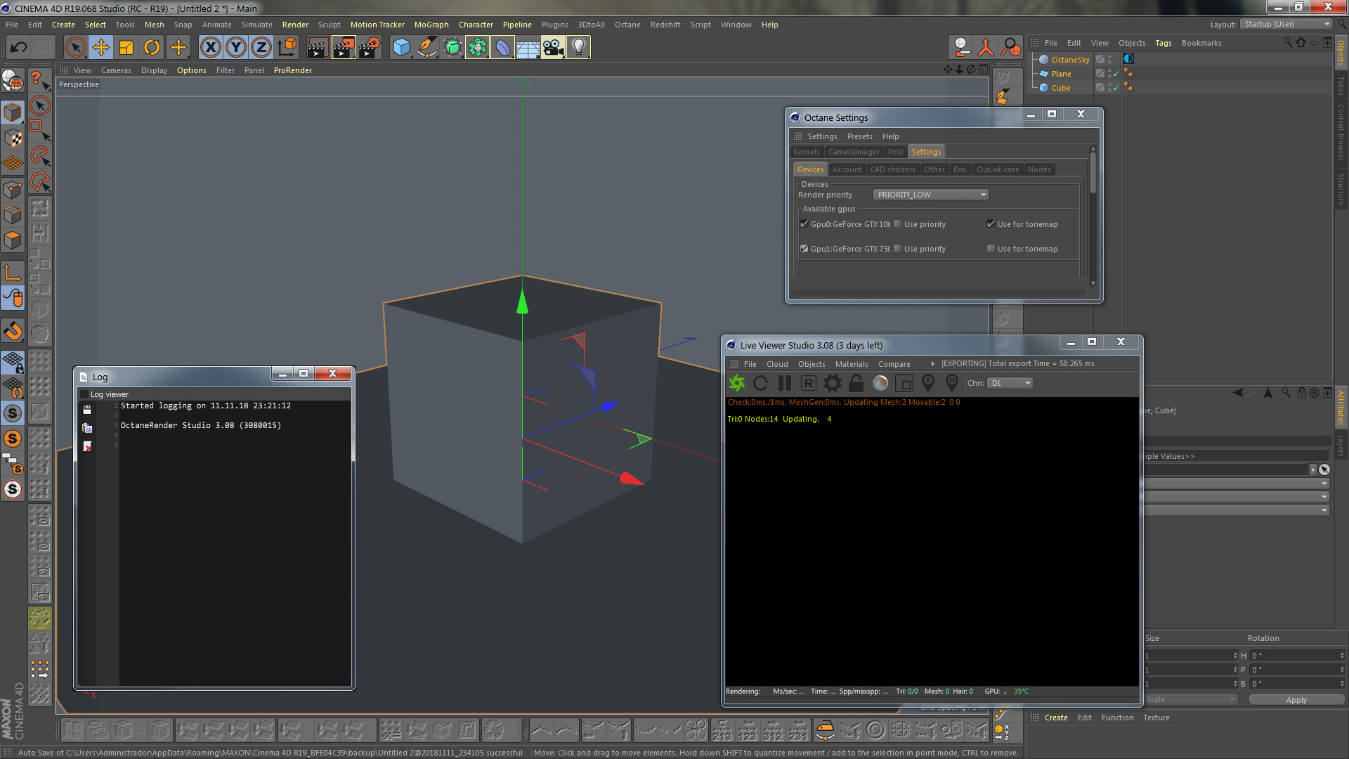 I'm using Cinema 4D r18 or r19 it doesn't matter, nothing happens, black screen, if I try to close de live viewer window it says "Please wait until update progress is completed.