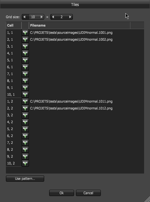 sorry I was expecting the "use pattern" tool to detect the needed grid size by itself (and optimize it).