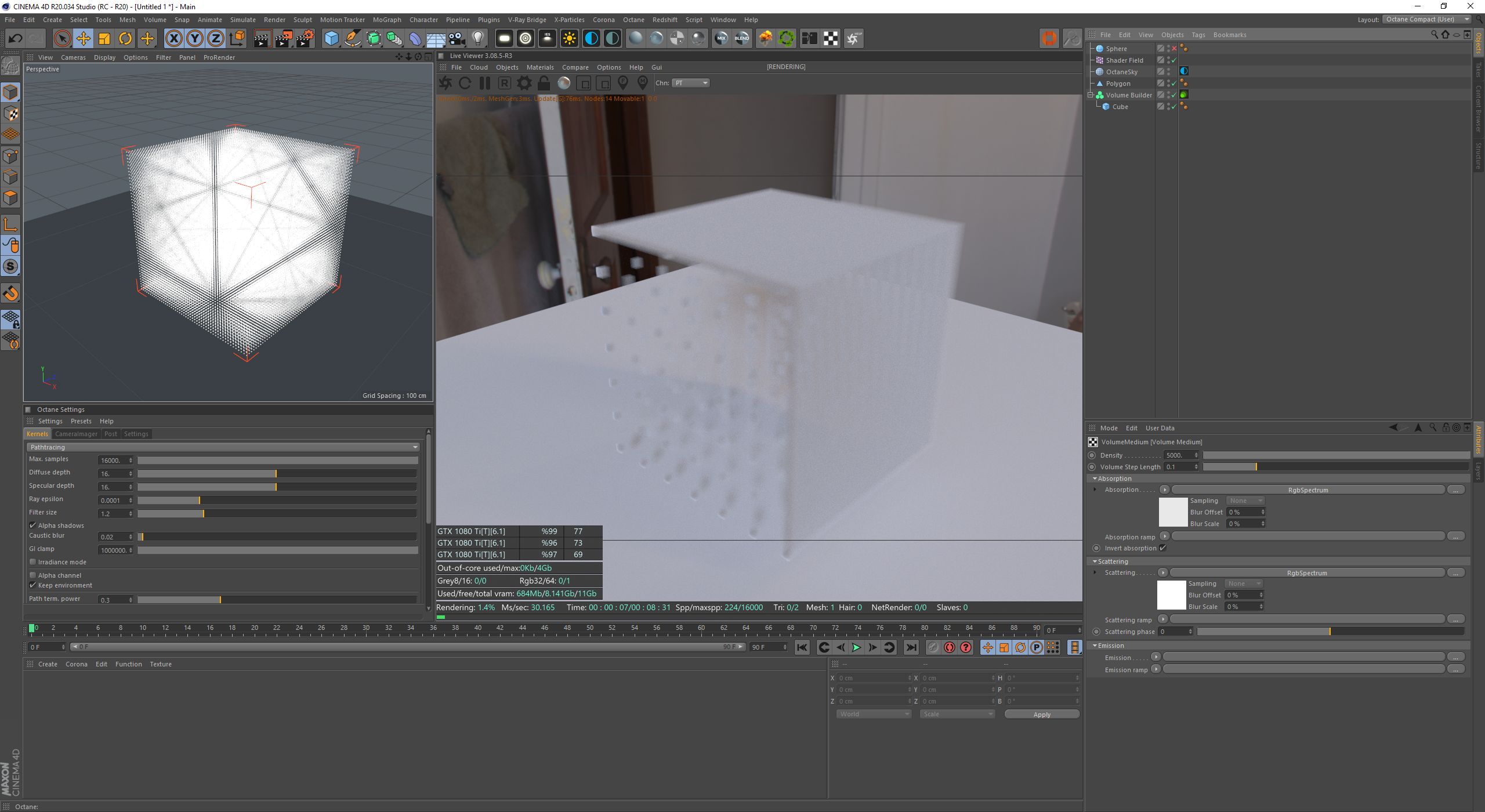 C4D R21.207 / Octane for C4D 2020.2.4 / Watercooled 4 x EVGA Geforce RTX 2080 ti