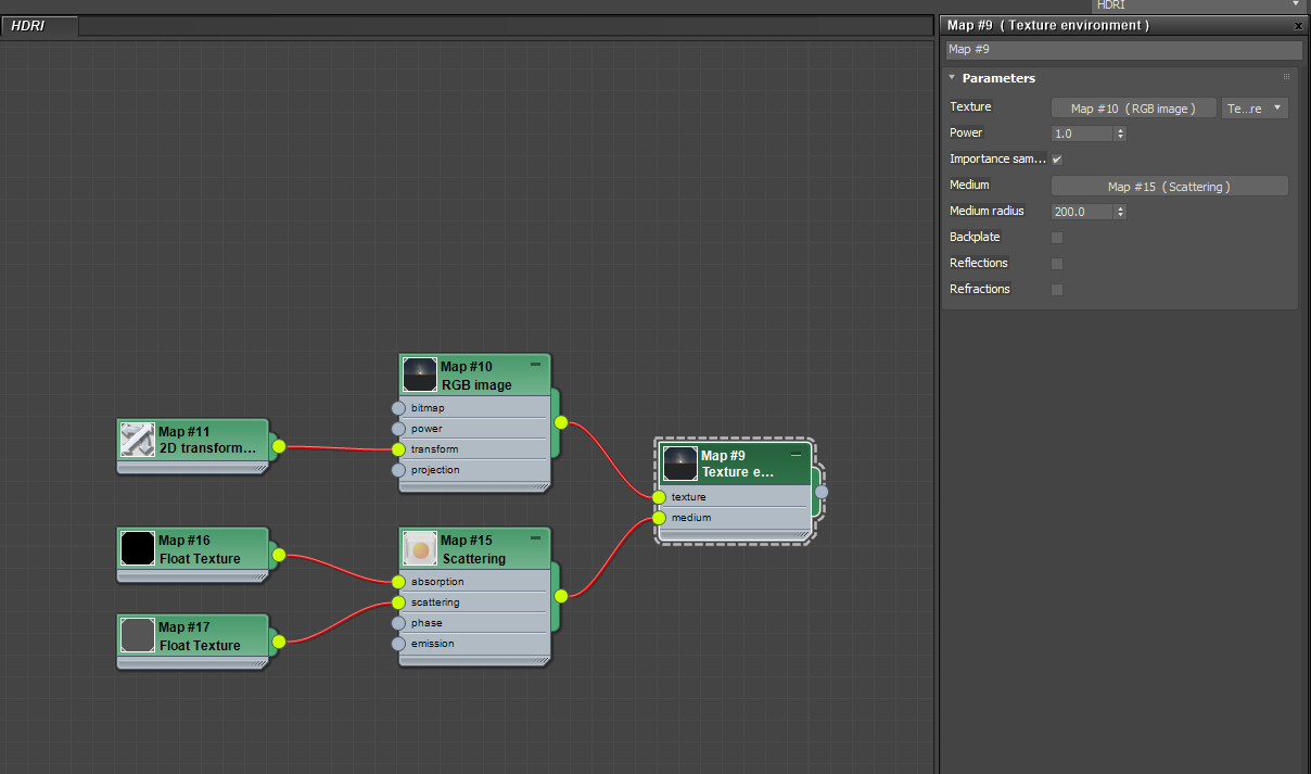 like this it look very simple... I use octane from version 1 and I don't really look at all the node inputs :oops: Yes, there is a medium input in texture environnement node ! Thanks, I'll try :-)