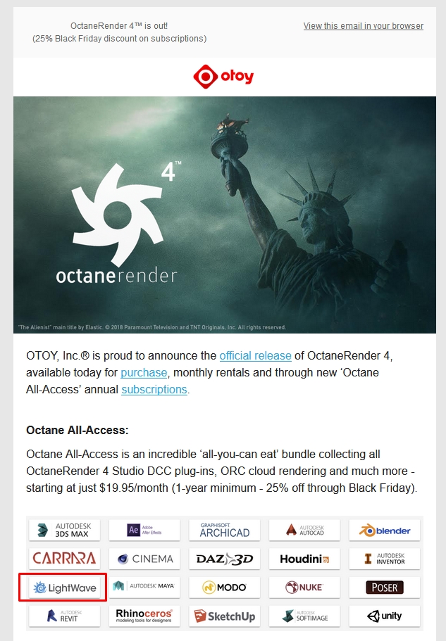 My e-mail form OTOY says ALL-acess have much more plugins (i need LightWave plugin) than what it says on Upgrade/purchas epage.
