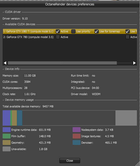 I tested a v3 scene at v4 (Rhino plugin) and a frame of my animation needs 24s instead 11s before, if I enable the denoiser. The sampling rate of MSamples/s is nearly halfen during the calculation. What do you think? Is it caused by the GPU setup?
