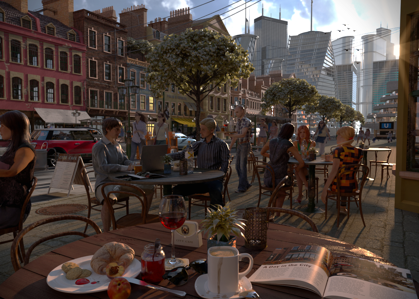 The idea behind the scene is driven by the motto of the evermotion challenge "A Day In The City" and I wanted to portrait the contrast between historical and modern architecture.