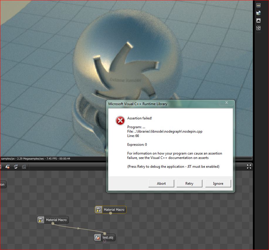 Ok had another error creep in.Thought you need to see the attached.I was trying to right click and delete one of the material nodes when it happened.It has only happened once so far.