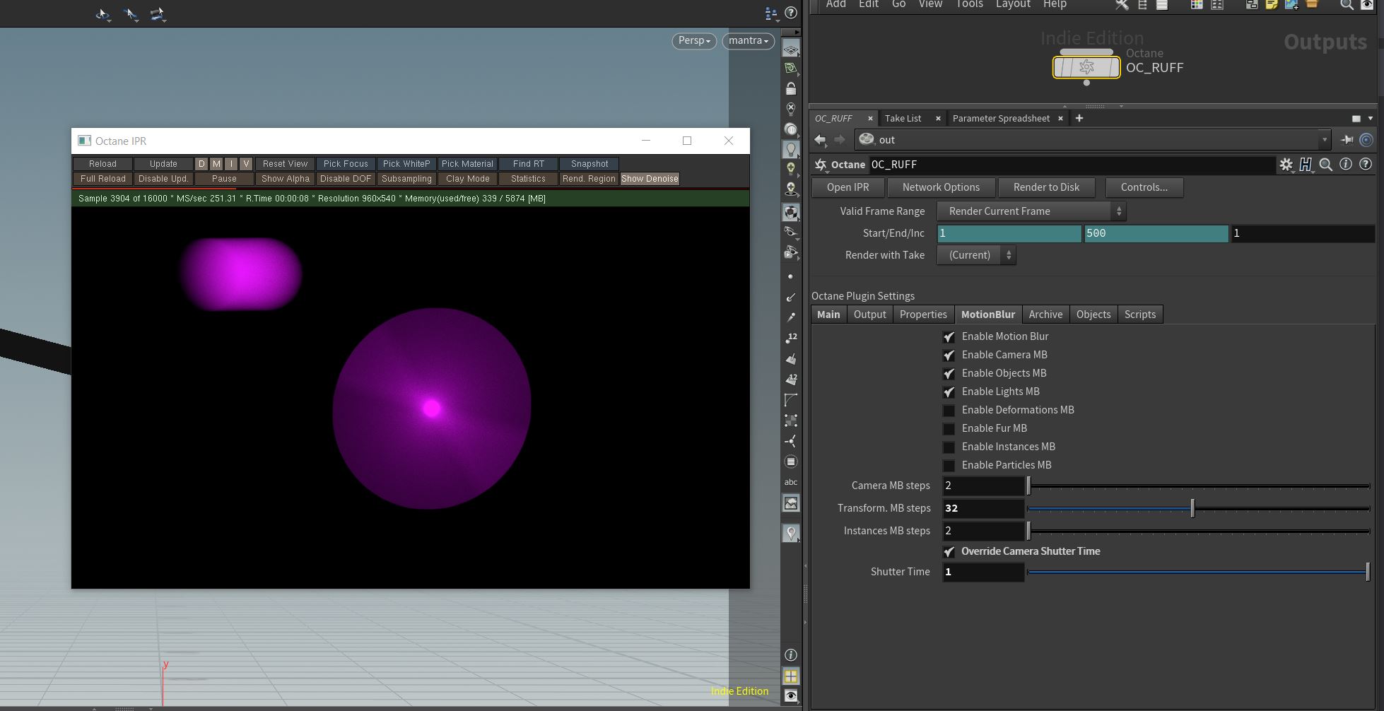 I've been having trouble with getting the motion blur samples to work on spinning objects. I've done a test with an object-level very fast spinning motion on a box. I did a render with Mantra where it seems to sample as you'd expect with 360 degrees of blur and then the same settings with Octane and it never seems to give the expected results. Is this something I've missed or is it a limitation?