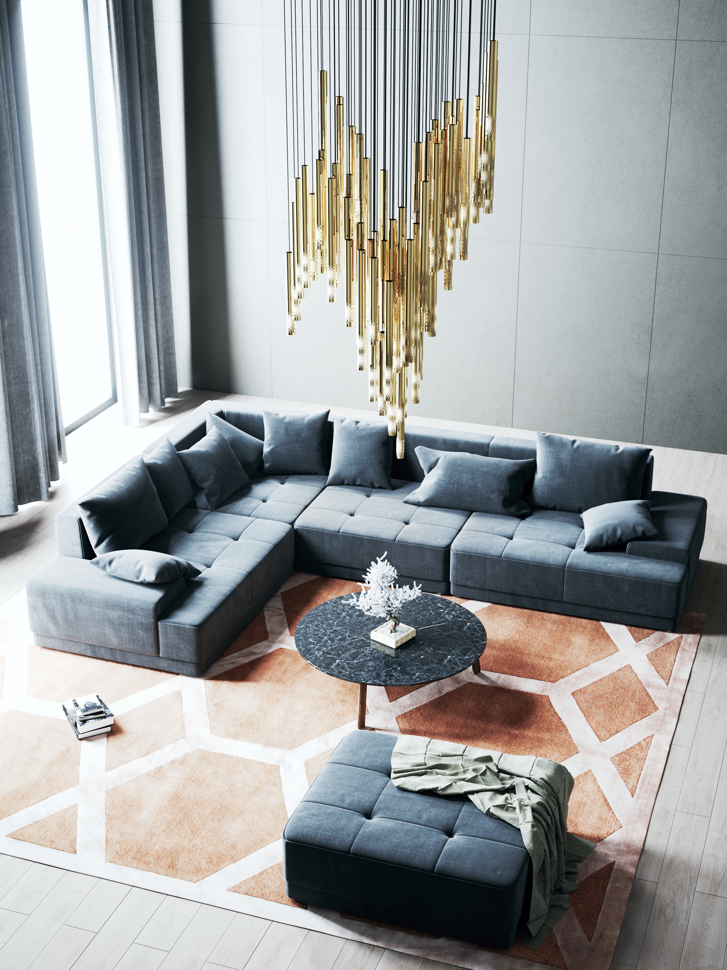 Hello! Today I am sharing the third work done in Sans Souci company, it is a living room that I designed for the lamp called "Symphony". There are 4 official shots and
