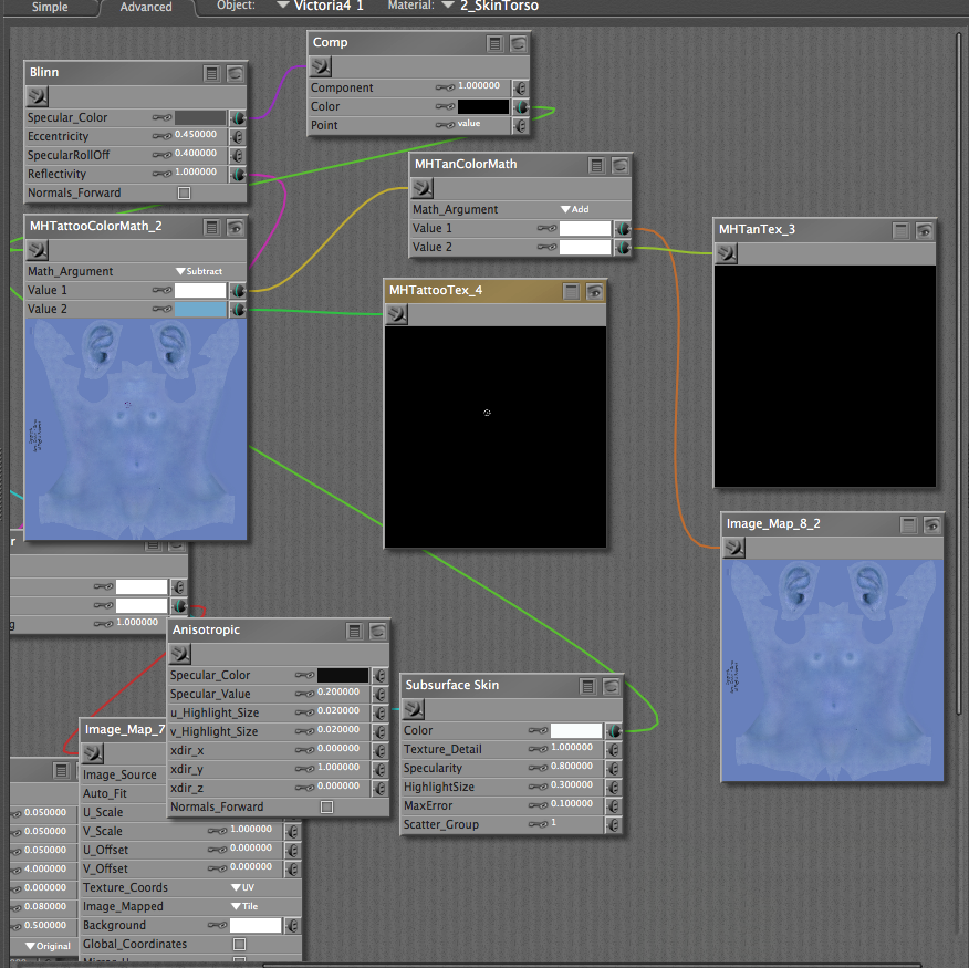 1. Adding tattoos. The texture I originally used MH Skin Blender, so had an alpha for the tattoo itself. How would I go about adding it to a material node?