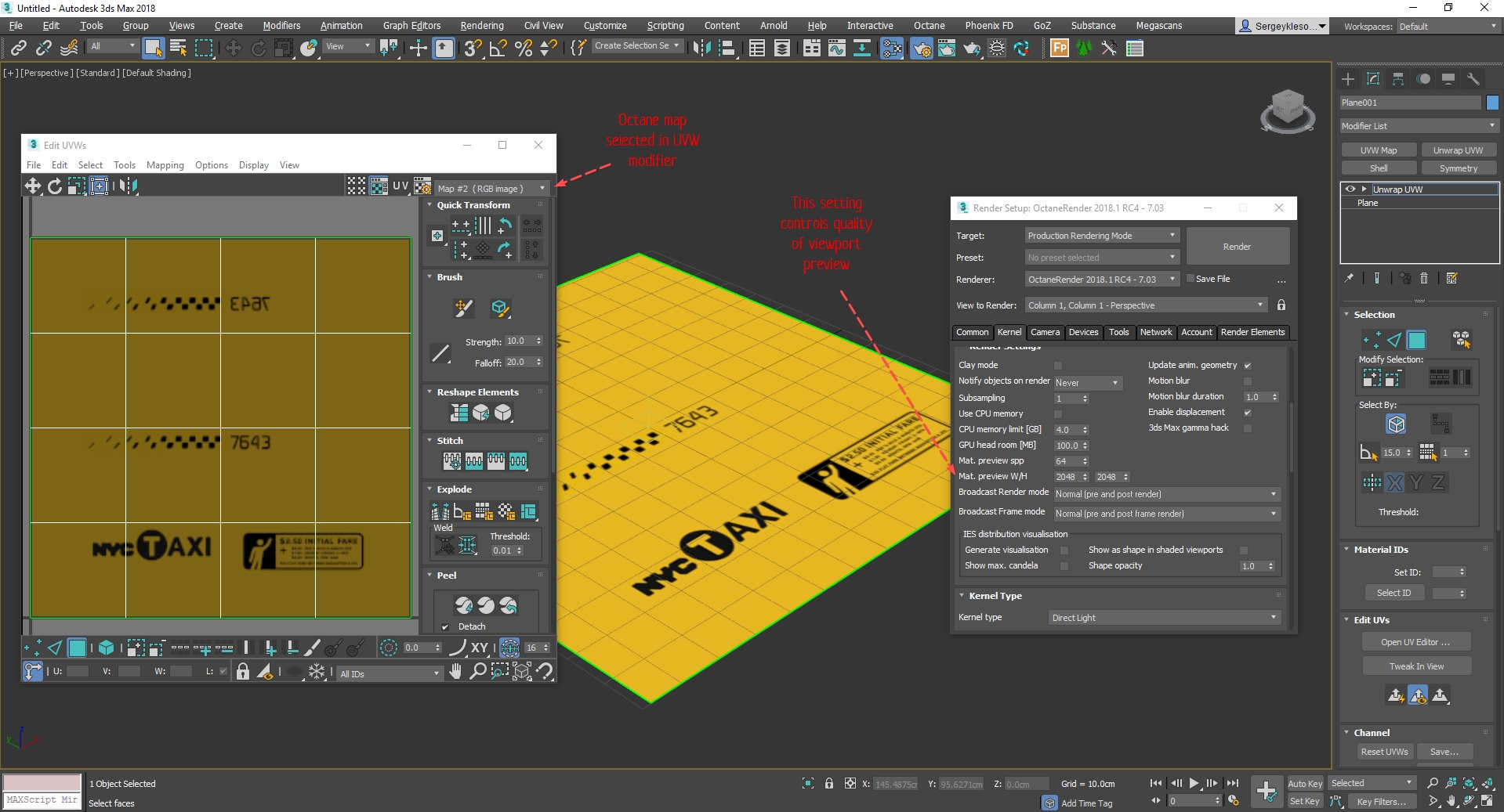 - Octane Bitmaps are not selectable in the Unwrap UVW editor. Makes it difficult to edit or unwrap UV's.