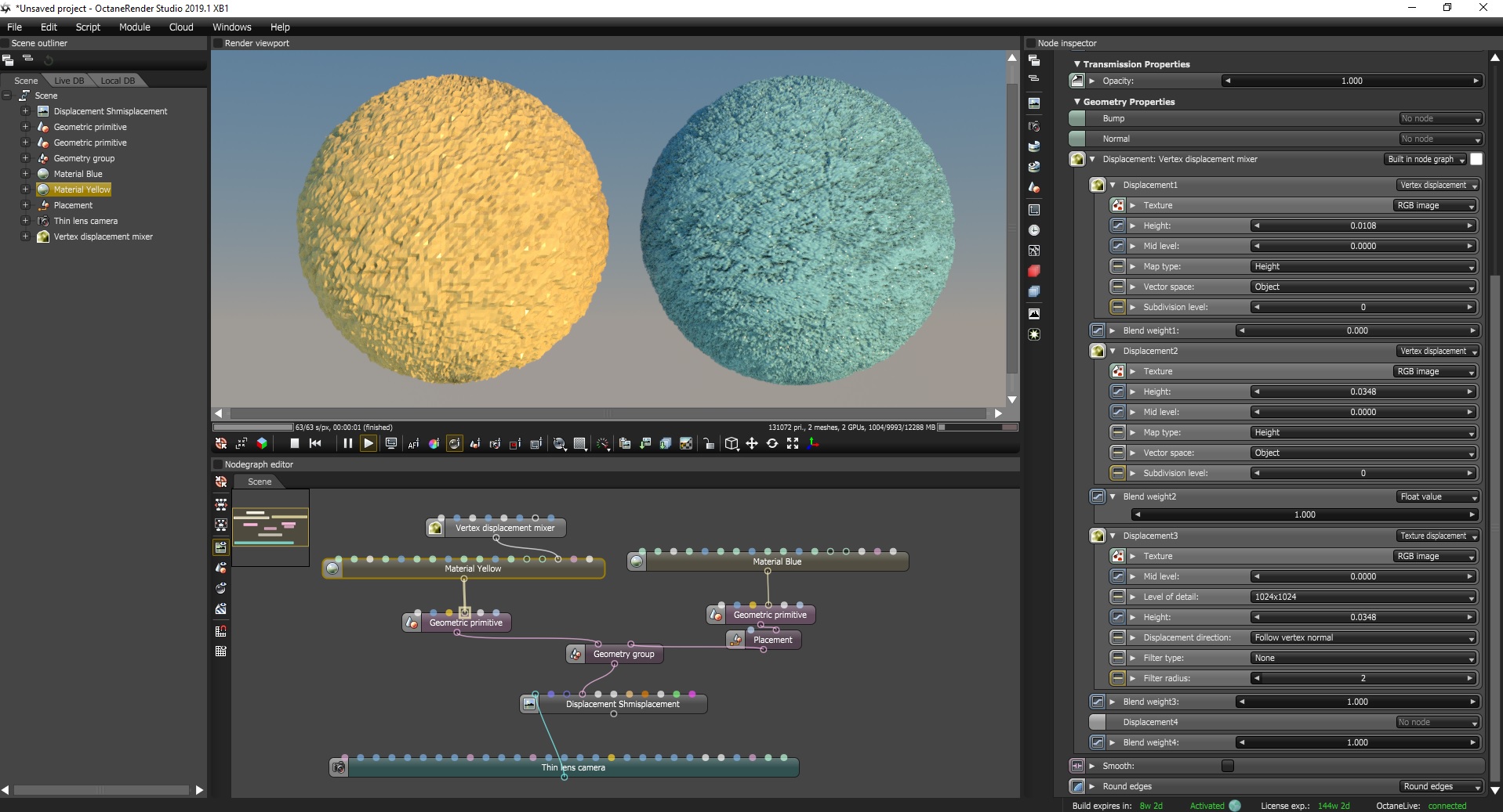 In the Yellow sphere I have 3 Displacement layers:
