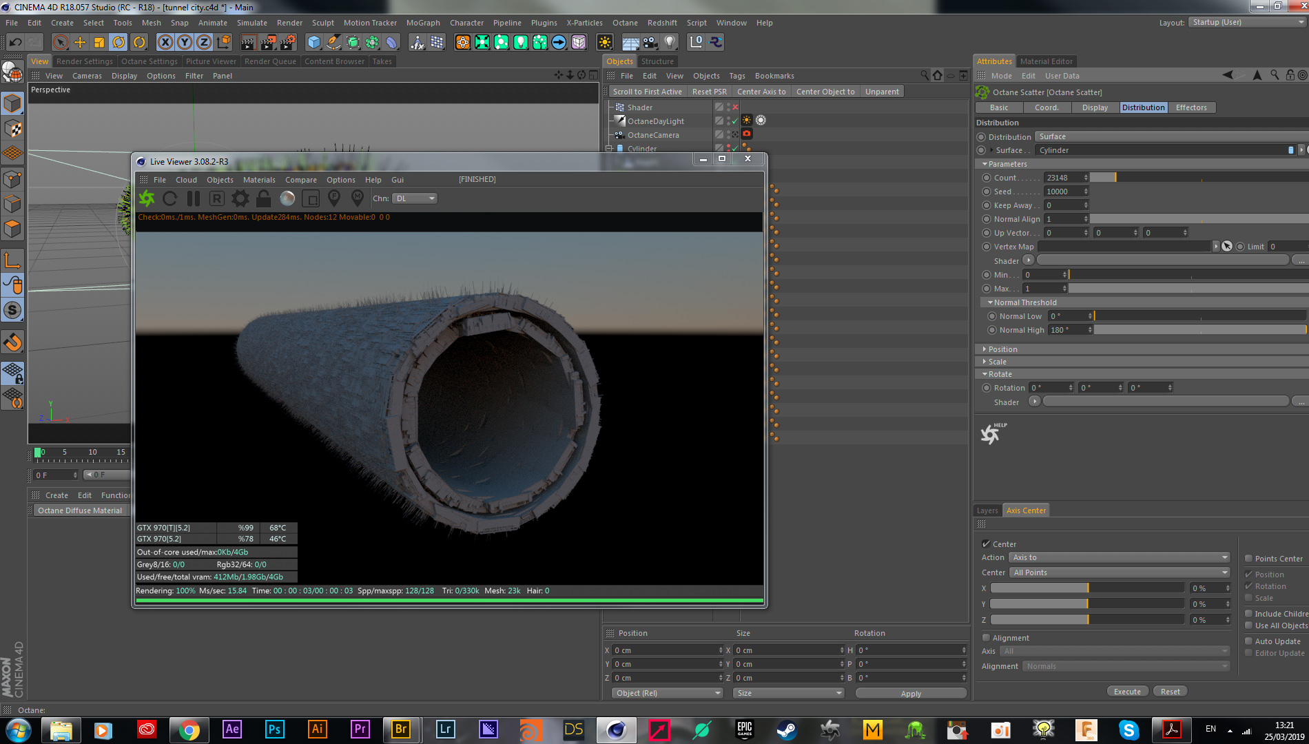 Building a a tunnel in C4d but need to have the obj to flip inwards not outwards. I did bring the normal align down to 0, but everything is facing upwards.