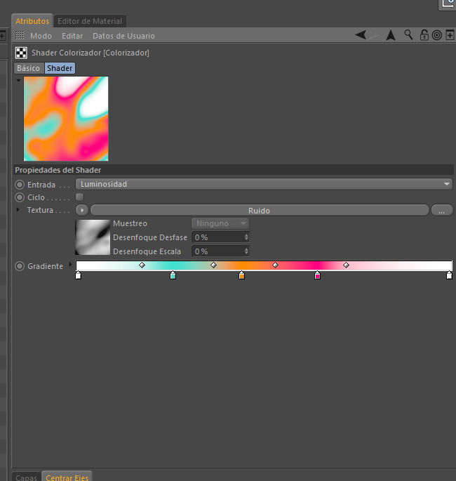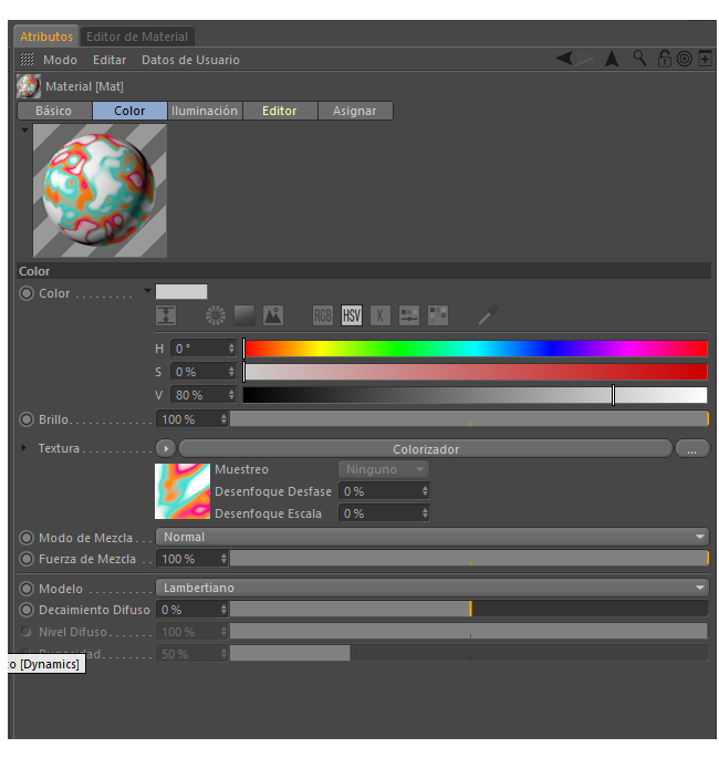 I have created a c4d material, in the color channel I add a colorized texture, inside this I add another texture of noise and I give it animation speed.