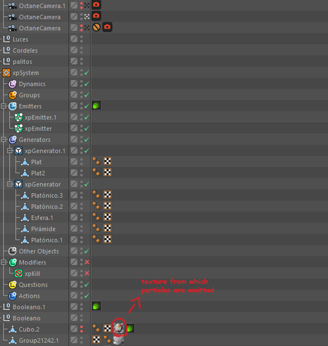 Then I apply this texture to the Xp emitter so that it emits from it. The problem comes when I apply a Xp generator with different objects linked to the emitter. The texture is not shown.