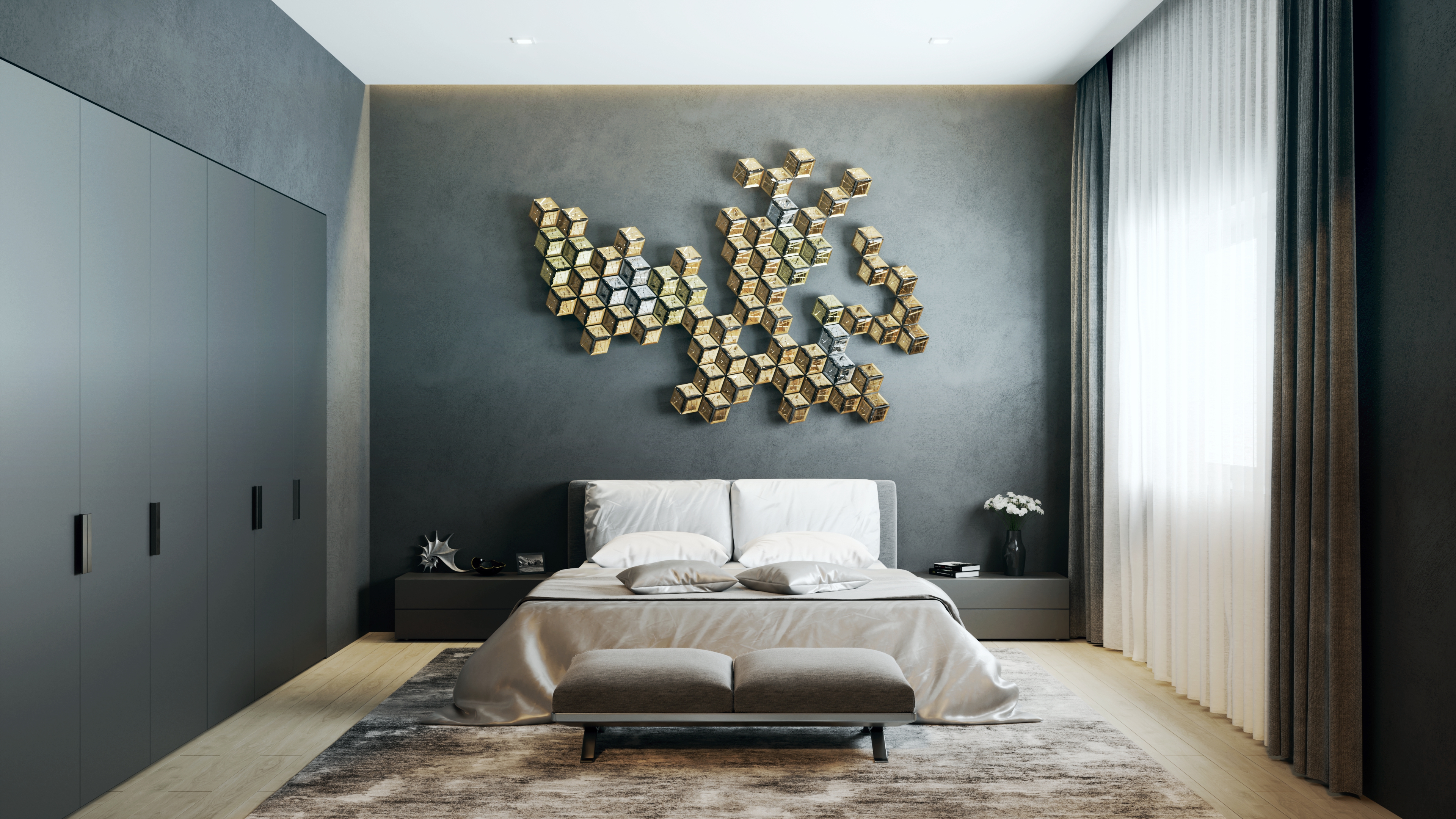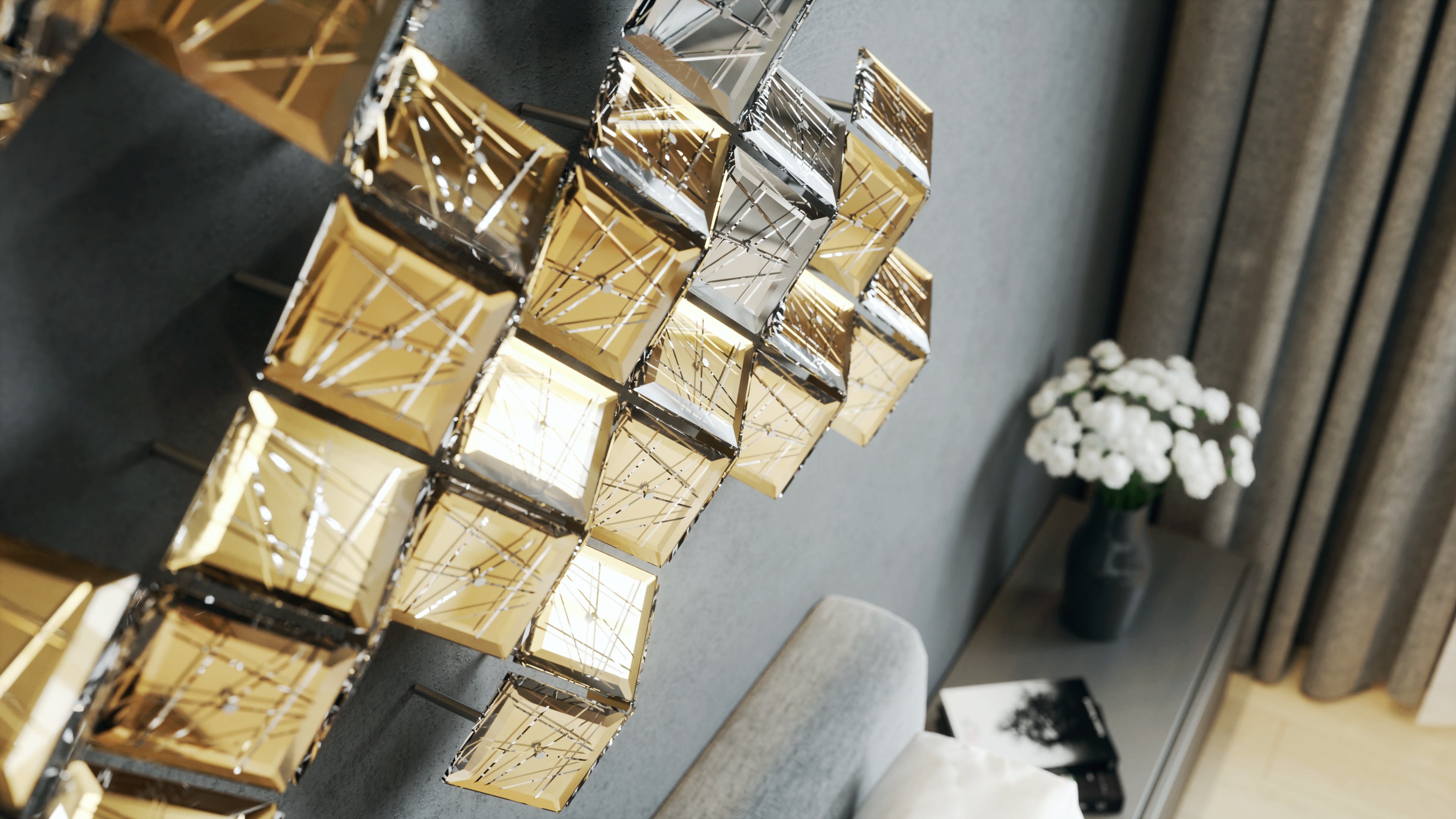 Good day to you all! Glad to share with you this restyled bedroom interior made at Sans Souci Lighting for the lamp Diamond Wall designed by Martin Lukačka. There are 3 official views and the others are unofficial, as usual done as a test for materials and light.