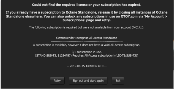 NC17z wrote:Do you have to have a Subscription to Install the 2018.1.1 or the 2018 Standalone? I got an error message stating that I don't have a subscription available for this release. Doesn't make sense to me. I own a Standalone License and a Cinema 4D License. Since Version 3.