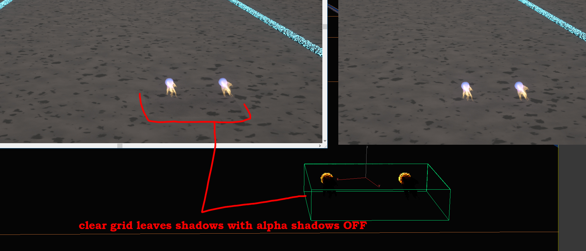 For some reason Phoenix clear grid leaves shadows when alpha shadows is OFF. is there way to fix it? We are not using alpha shadows to speed up rendering. Also choosing cast shadows OFF in object properties does nothing.