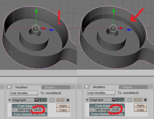 I did another test: in the same Blender scene I imported a new istance of the assembly. I applied smooth + edge split a 10 degree, and exported everything.