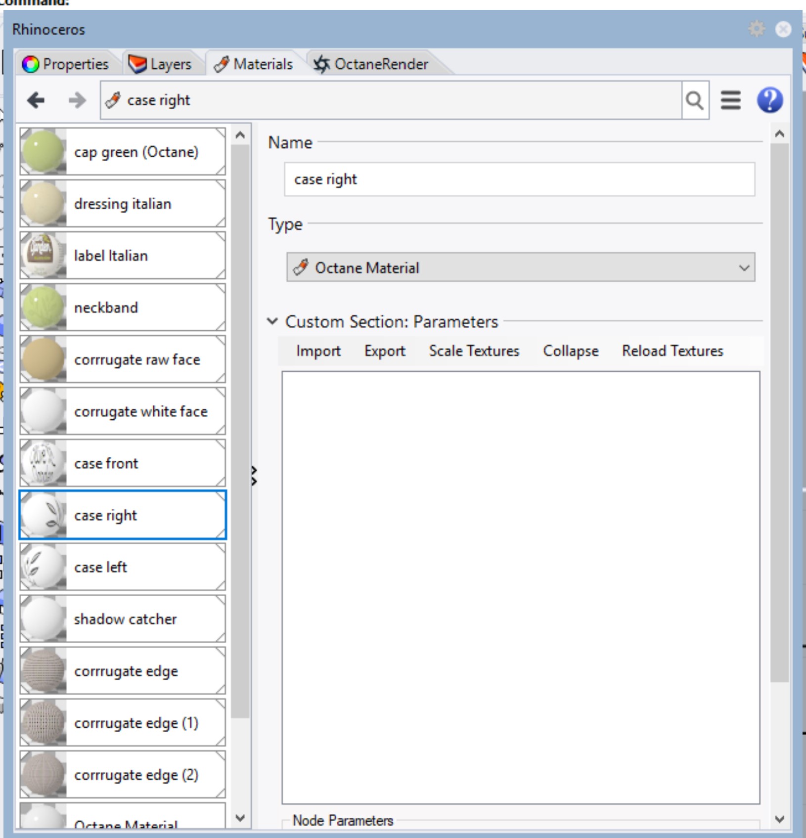 Yes - you need to open the Octane tab before you can view OctaneRender materials in the Material tab. The nexty version of the plugin pops a warning message to tell you this.I just tried the same trick of flipping over to the Octane tab and converting all Rhino materials to Octane (they were already Octane),