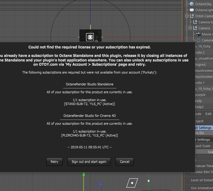 my machine went blue screen during render last time,i restart c4d ,it pops up license not available,in used on MY PC.