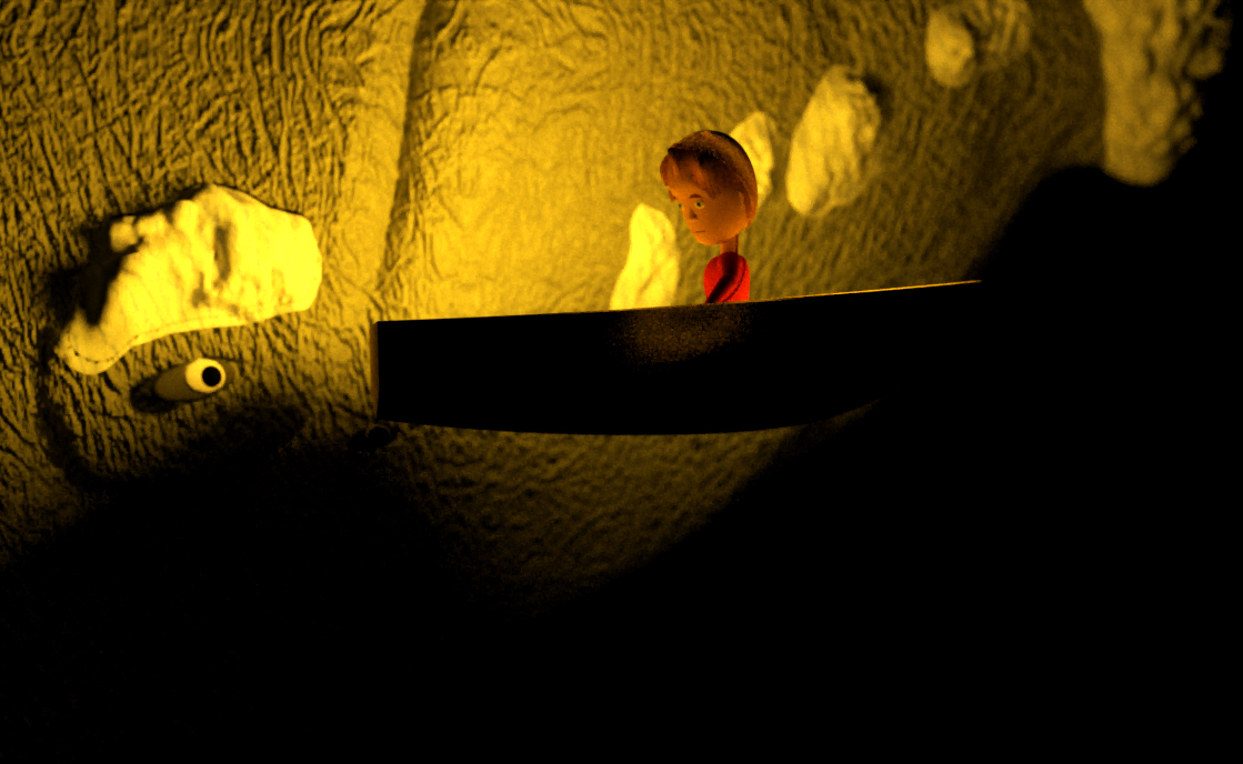I have mucked around with the surfaces and materials butt his should not have this much effect. I would have thought if the boat timber was that bright yellow, his face and jumper should be very bright too.