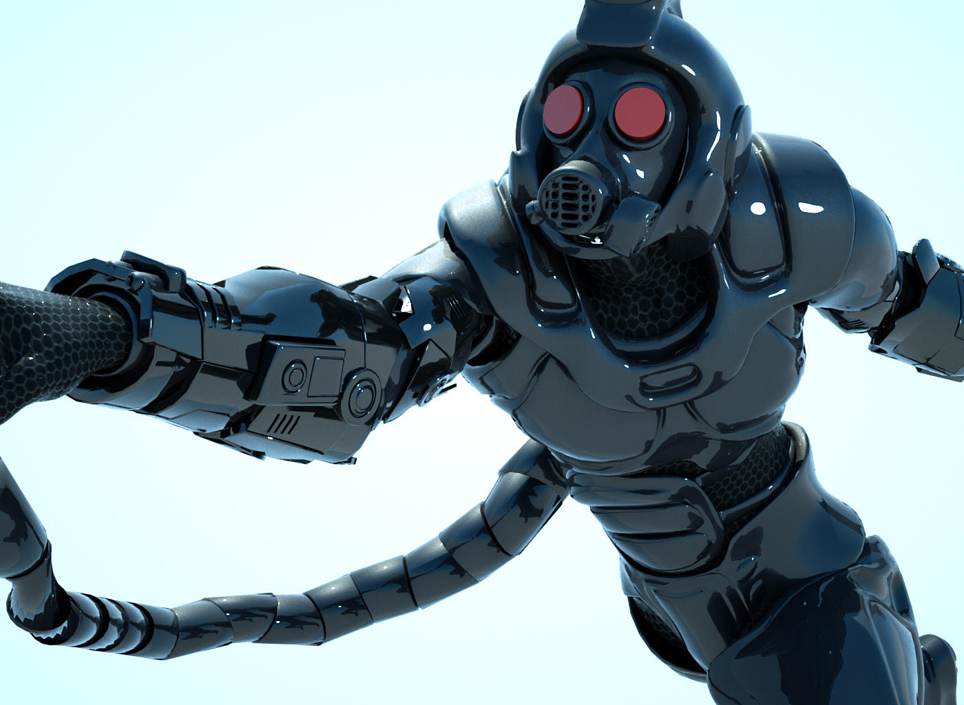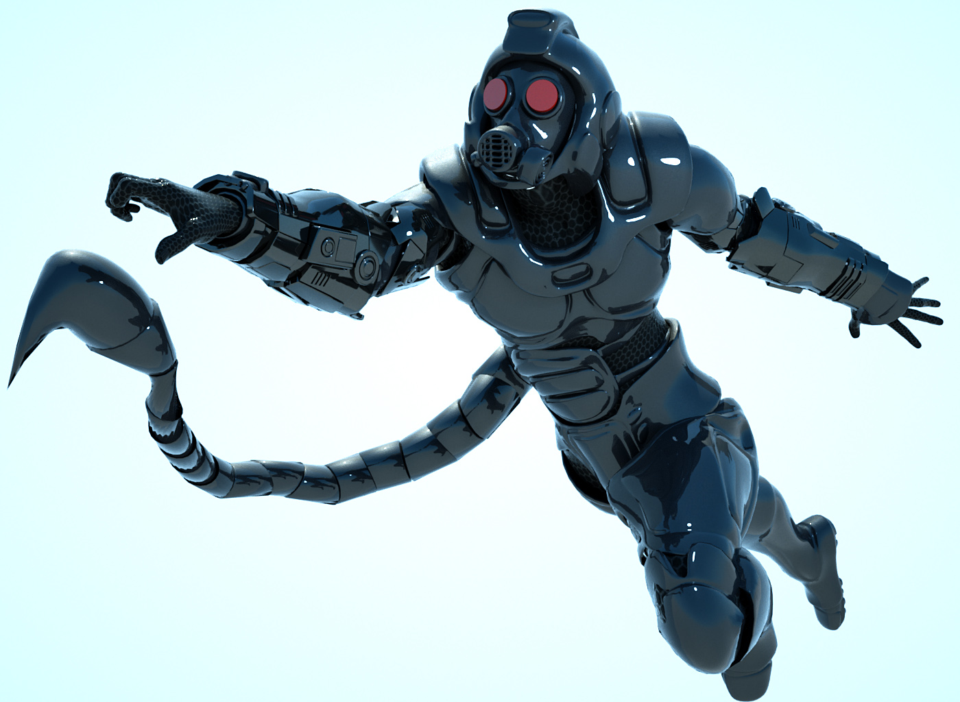 The model and pose are all very nice, but the material(s) are dull. With some texturing this one will be really cool.