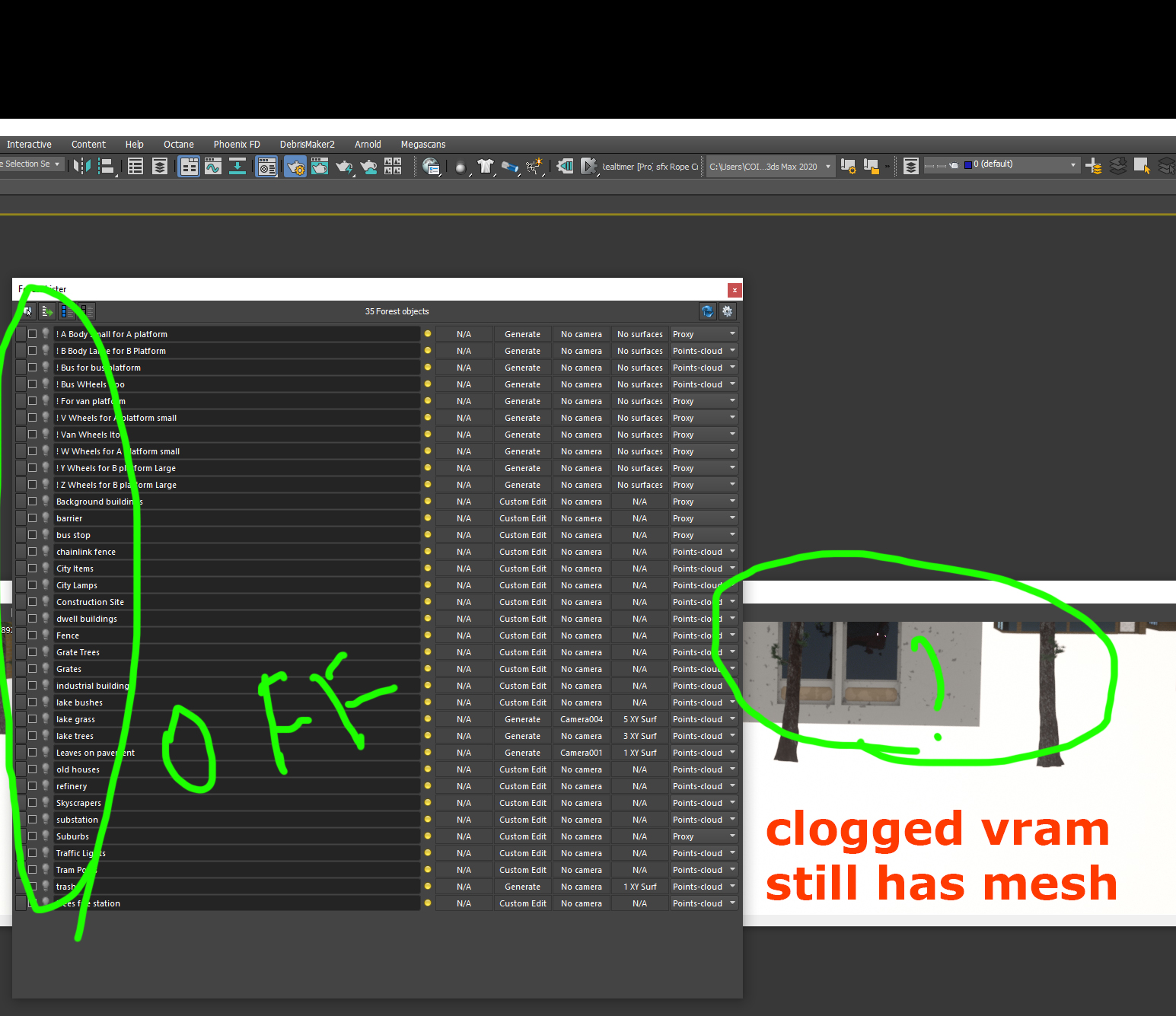 There is a major problem with "clogged" vram effect. It affects not only itoo but octane lights etc.