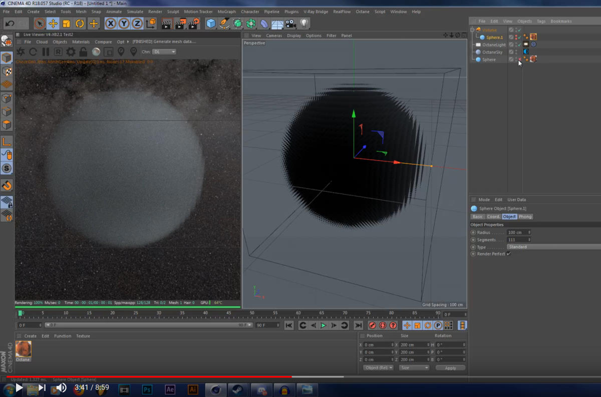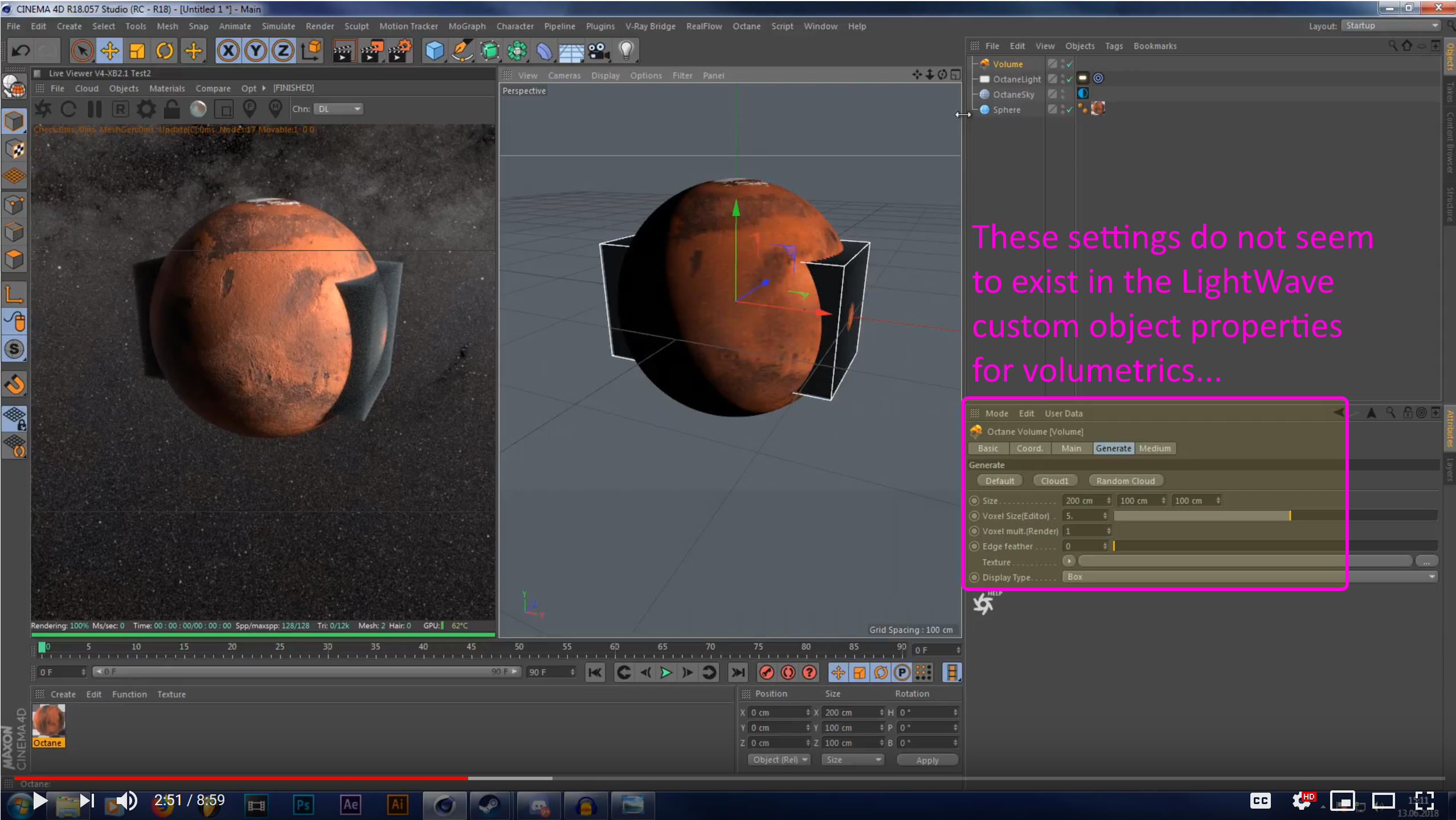 I'm trying to follow this tutorial for creating a planet with an Octane fog volume atmosphere: