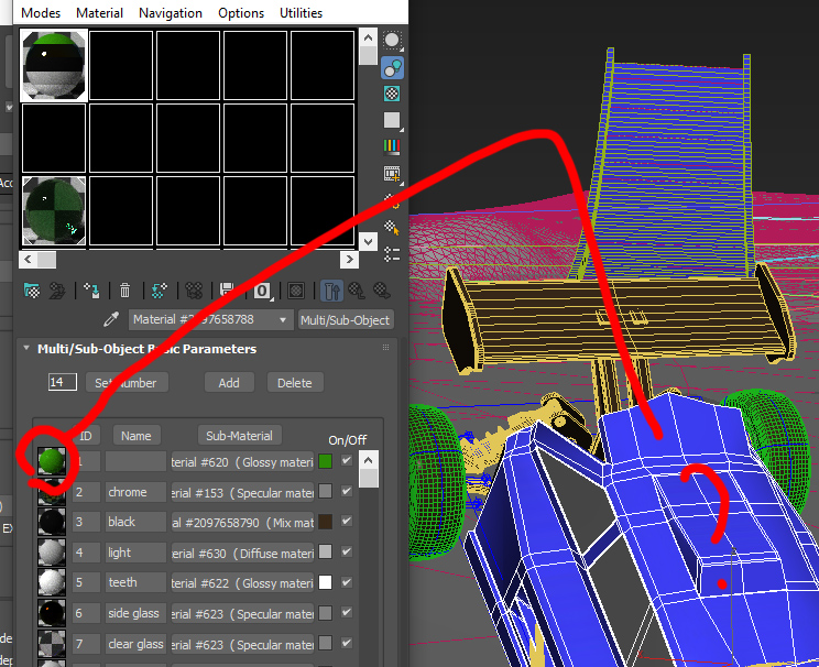 and when we switched polygon id to 1 (GREEN COLOR) in viewport the car is still blue. Octane has hard time updating materials in viewport