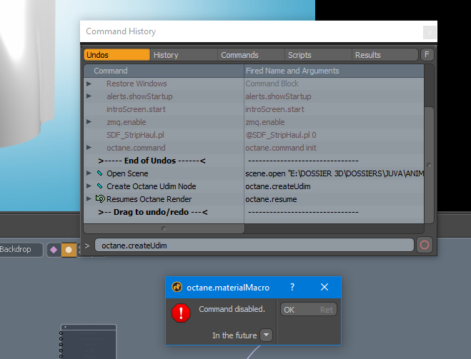 I'm trying to load my UDIM maps with the history command (octane.createUdim), but after selecting my images I have this error message: