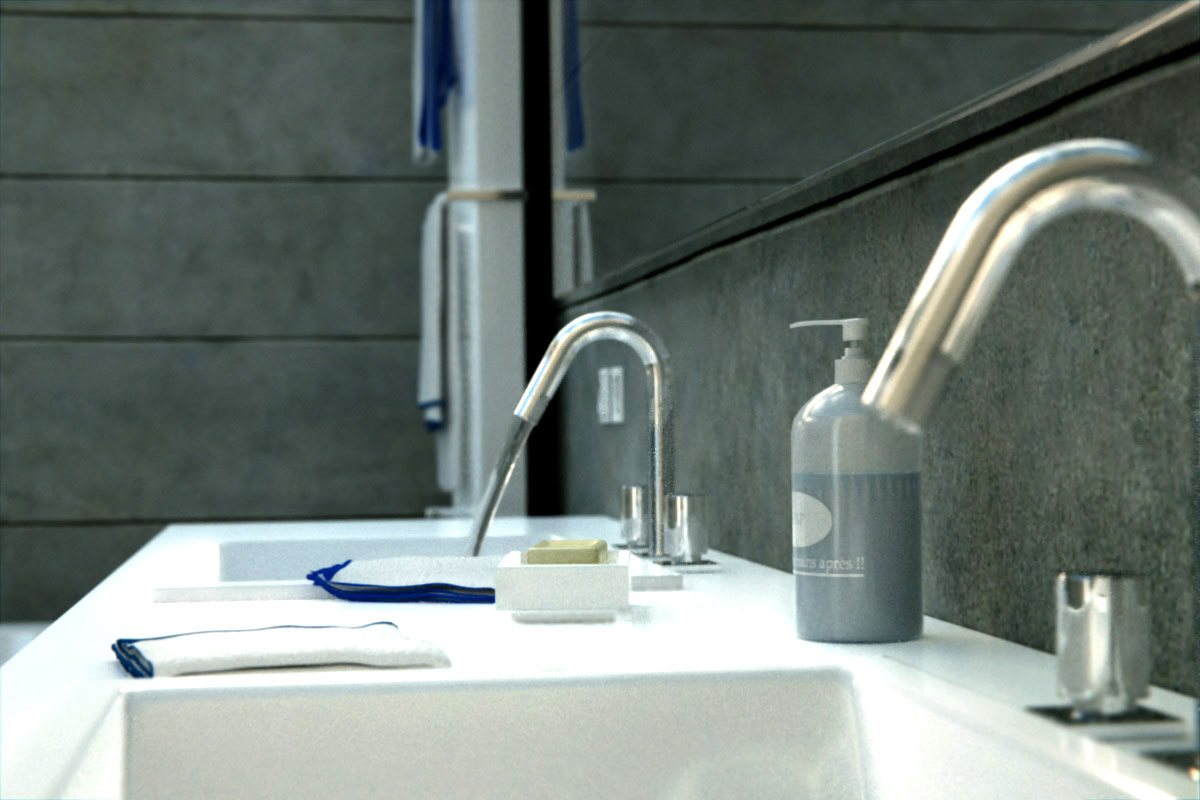 Oh, and change the focus to the faucet in the left, rather than focusing it on the wall in the back.