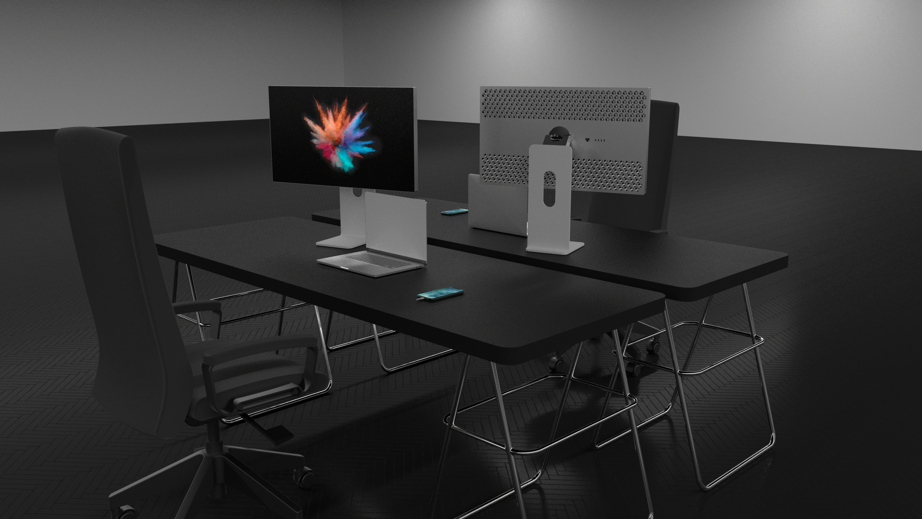 So I have this scene to replicate an Apple User office, with Macbook pro / screen etc.