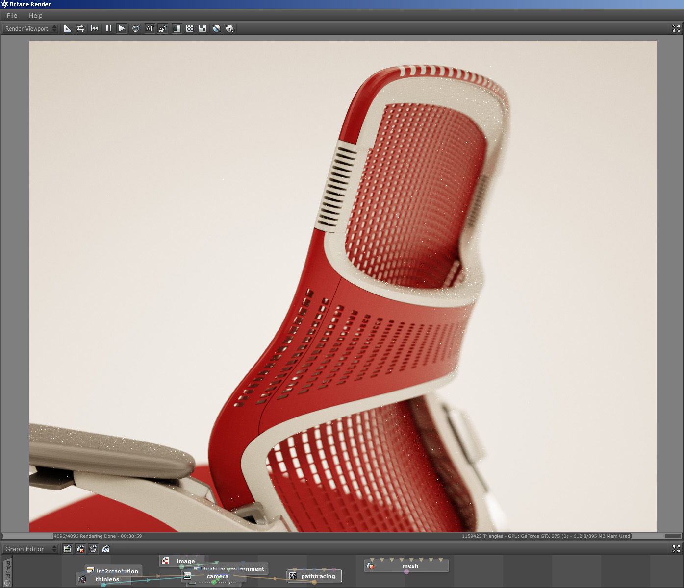 The chair was modelled in Pro Engineer, I modelled the chair 'skin' and some other parts on the back.
