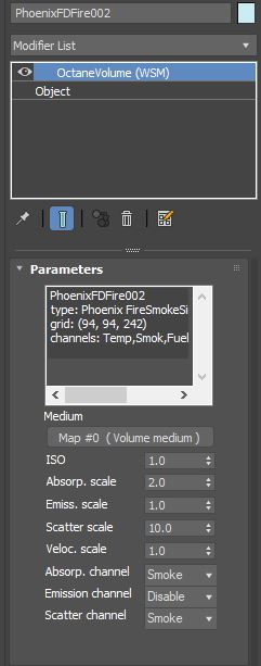 I want to have different color on smoke and the fire itself, so to do that i put an Octane Volume modifier on my sim, volume medium into medium, and set the 3 channels like this [ fuel , temperature , fuel ]