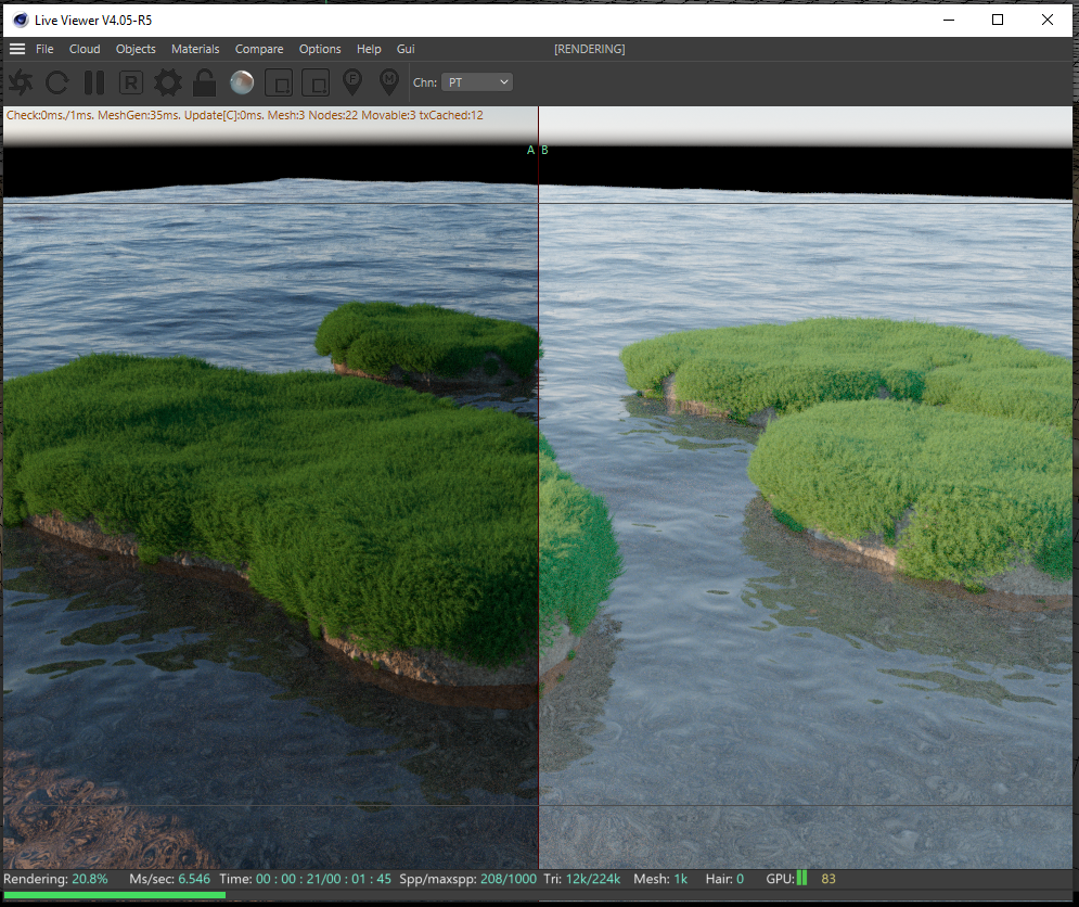 I've never seen this happen in other versions, but when I use octane version 4.05-R5 in R21 and turn on the A/B comparison option in the live viewer, the stored "B" image immediately becomes brighter, as if the gamma is turned up. I do not change any lighting myself, it just automatically is brighter and makes it difficult to see changes using the comparison mode. Is there a setting I'm missing or is this a bug?