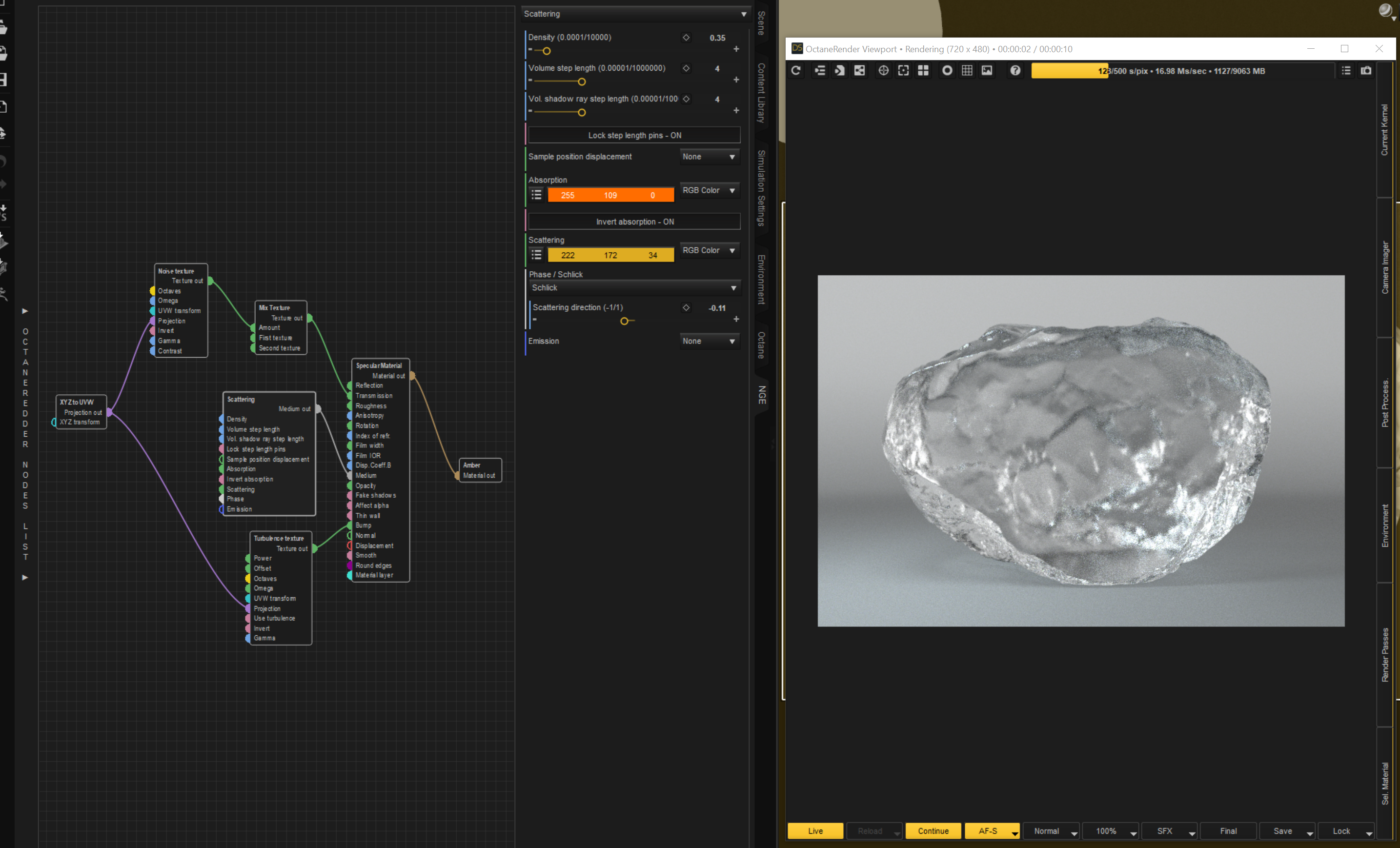 Thanks for providing the scene. Perhaps you could help here...to me it looks like unfolding a non-material node works OK, however when a material node is unfolded the result is a corrupted material, and the Amber Scene Surface can no longer be selected. I also notice that changing pins on the Mix texture doesn't restart the render, so there has been a break in the link between the Octane node in the NGE and the Octane node in the render engine.