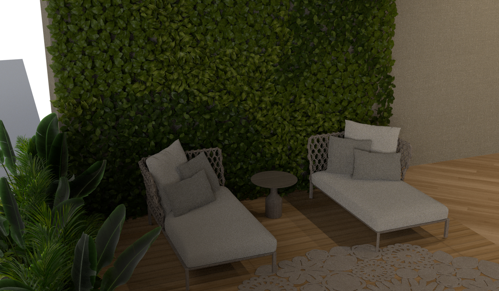 the scene as displayed contains 44Million triangles: there are trees and a piece of carpet, which contains half of the triangular counts,