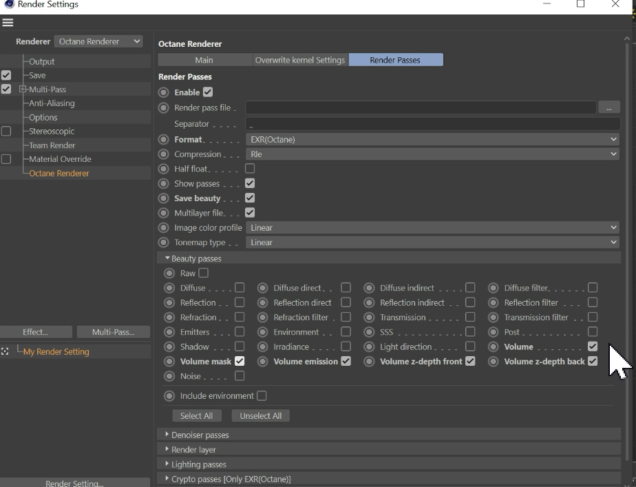 How do i render out a Octane volume in a seperate pass so i can peform post color correction on it isolated.