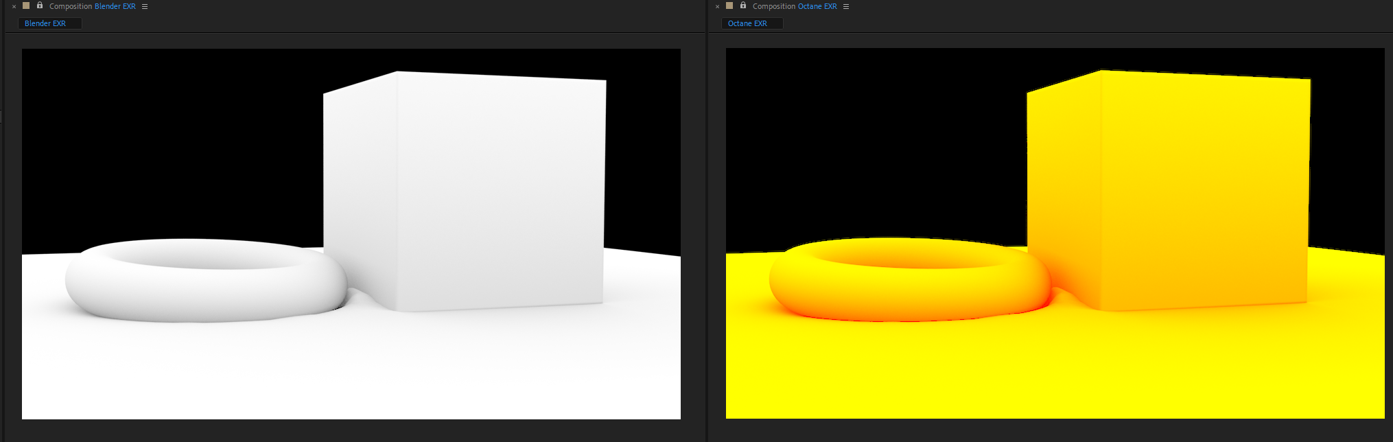 Another oddity is that when the Octane .exr (with Alpha Channel enabled) is opened in Photoshop using Otoy’s own EXR plugin, the AO layer renders normally. But if the file is opened using either ProEXR or EXR-IO, then the AO channel renders all yellow.