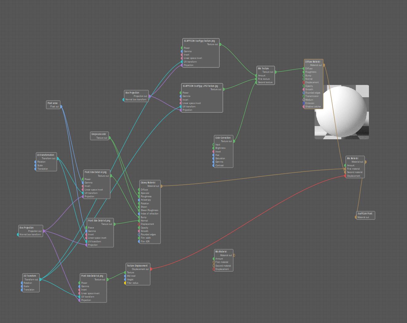 7. Plug the output of the Mix Material to the Diffuse / Glossy etc of the skin material which will basically place the previous pin that was plugged to just the skin texture. And you will see the final effect.